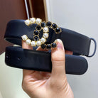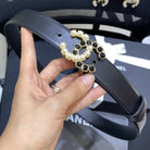 CC BELT 3.0CM LEATHER BLACK BUCKLE GOLD PEARL DIAMOND