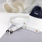 CC BELT 30 MM WHITE CALFSKIN GOLD HARDWARE WITH WHITE MIX BLACK LOGO