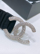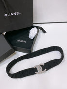 CC ELASTIC BELT 30MM IN BLACK WOOL FABRIC SILVER HARDWARE WITH RHINSTONES