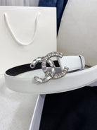 CC WOMEN'S BELT 30MM LEATHER WHITE BUCKLE SILVER BLACK DIAMOND