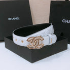 CHANEL BELT 3CM IN WHITE EMBROIDERED LAMBSKIN GOLD HARDWARE
