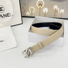 DOUBLE C BELT 30MM IN BEIGE CALFSKIN WITH SHINY SILVER BUCKLE