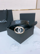 DOUBLE C BELT 38MM IN BLACK QUILTED LAMBSKIN GOLD OVAL BUCKLE CENTERED WHITE LOGO