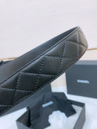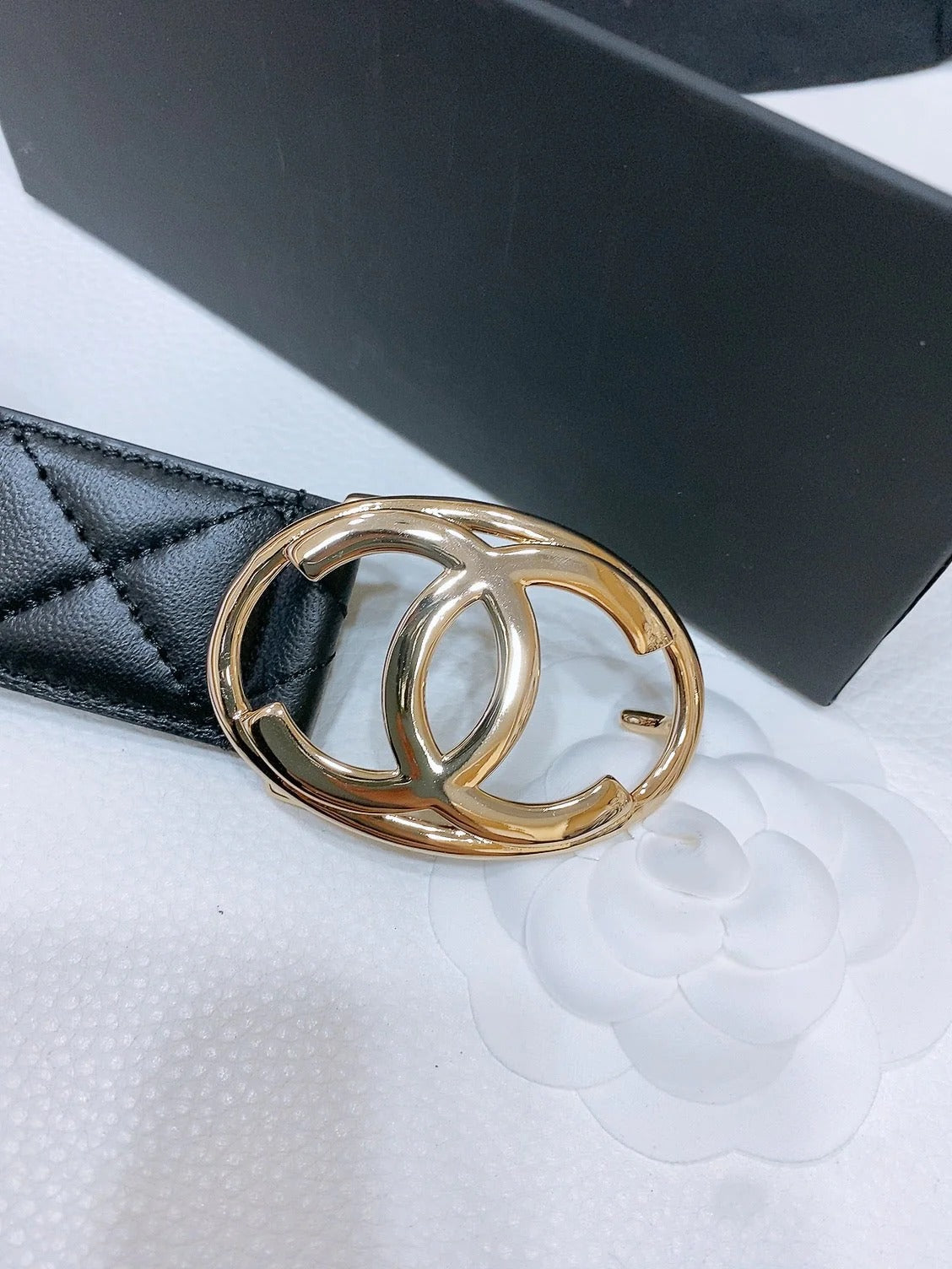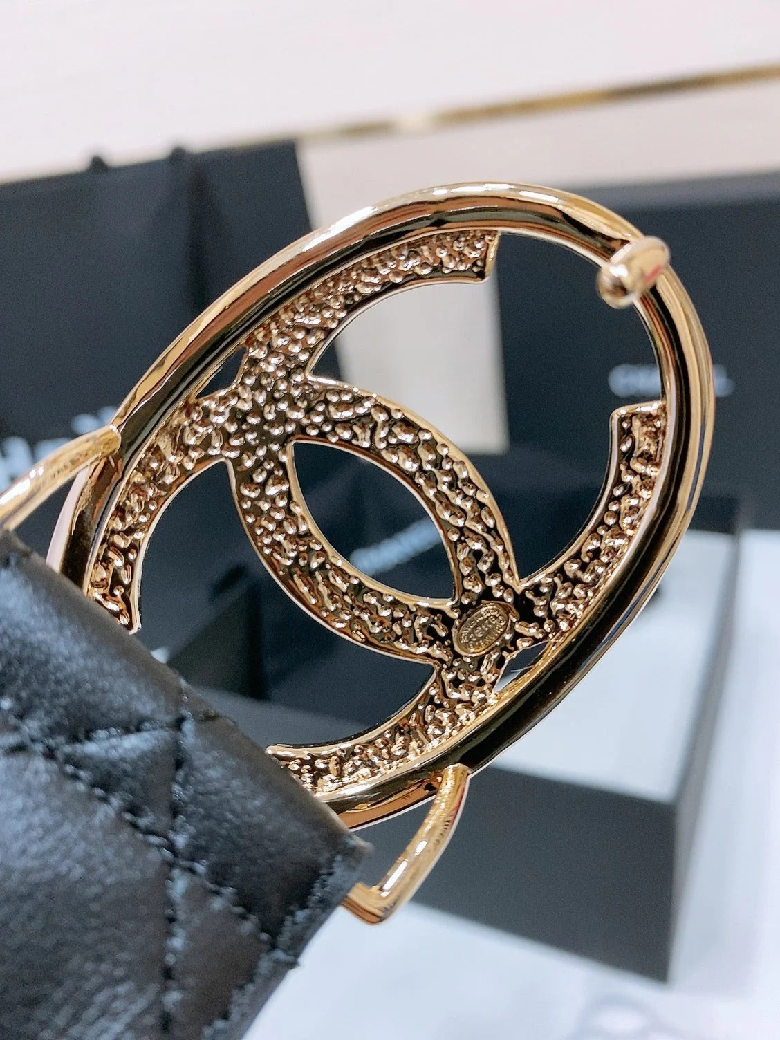 DOUBLE C BELT 38MM IN BLACK QUILTED LAMBSKIN WITH GOLD OVAL BUCKLE CENTERED LOGO