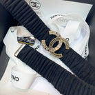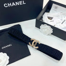 DOUBLE CC 30MM STRETCH BELT IN BLACK SUEDUE WITH GOLD CHAIN BUCKLE CRYSTAL DETAIL