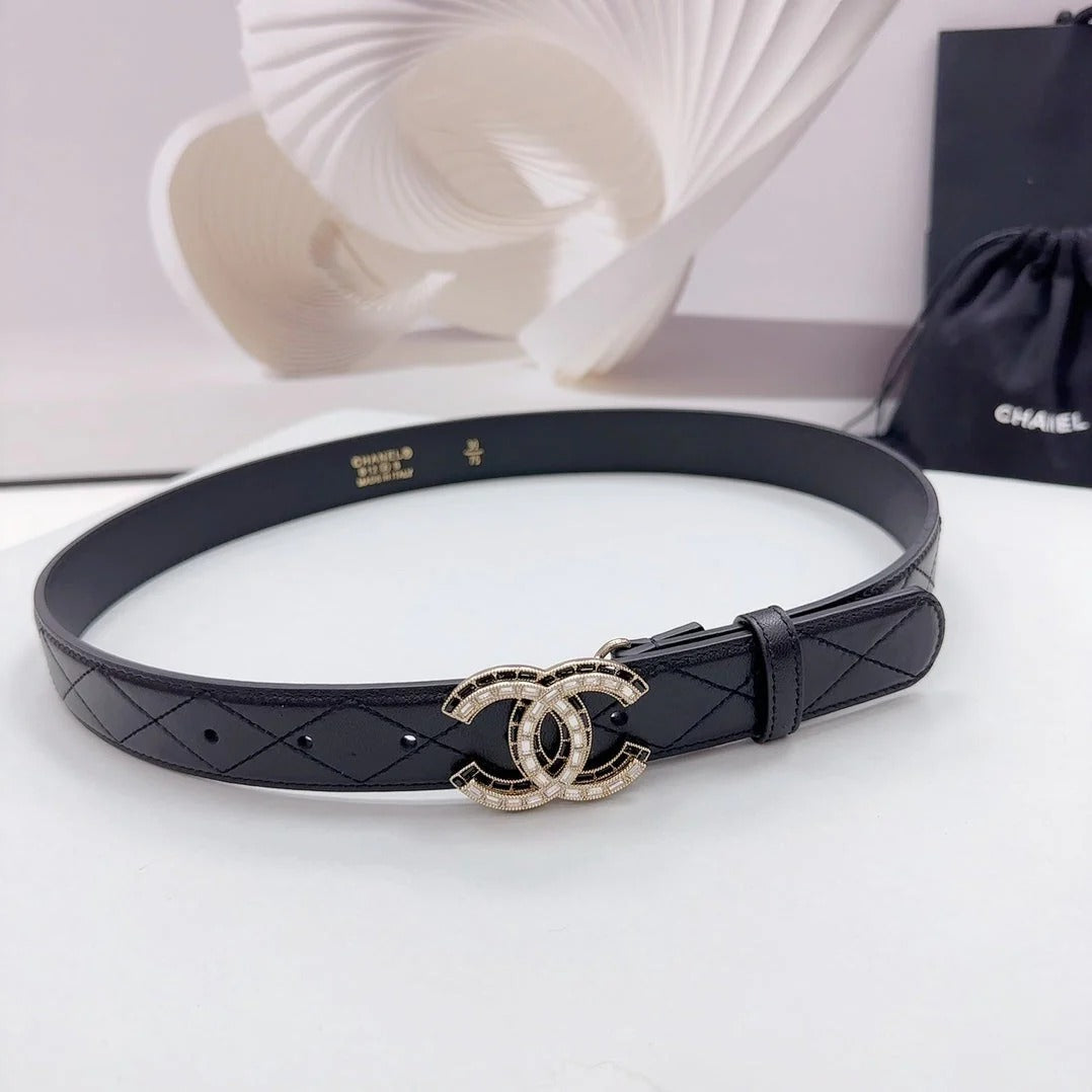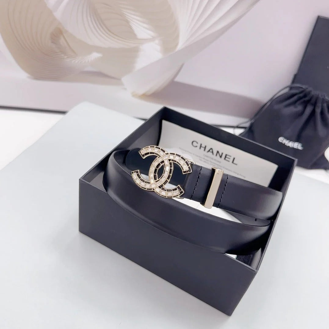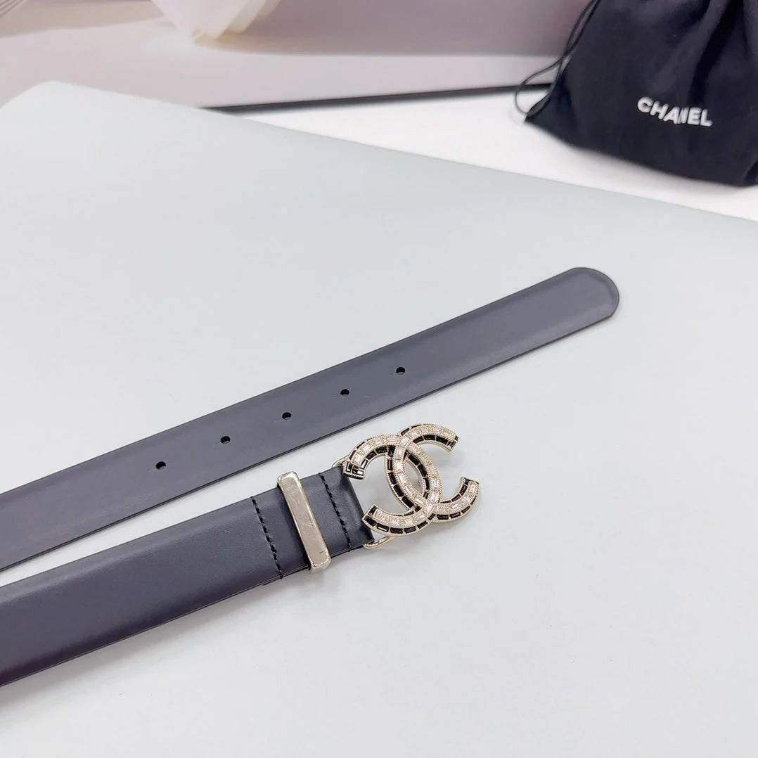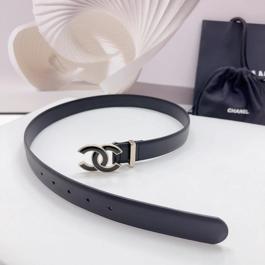 CC 30MM BELT IN BLACK SMOOTH CALFSKIN METAL HARDWARE