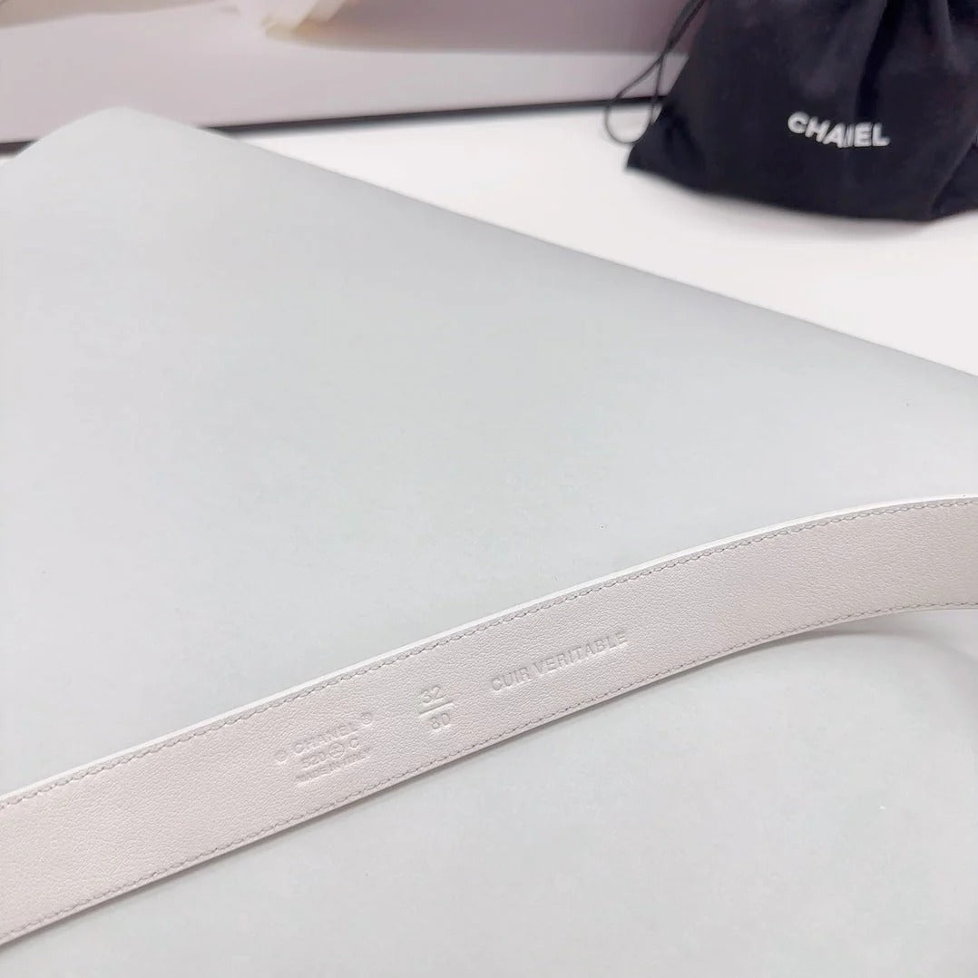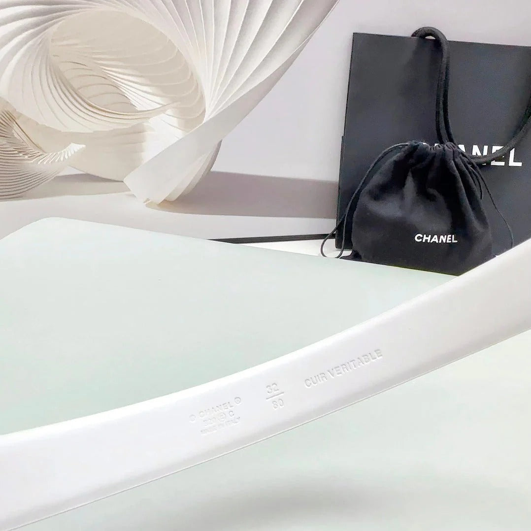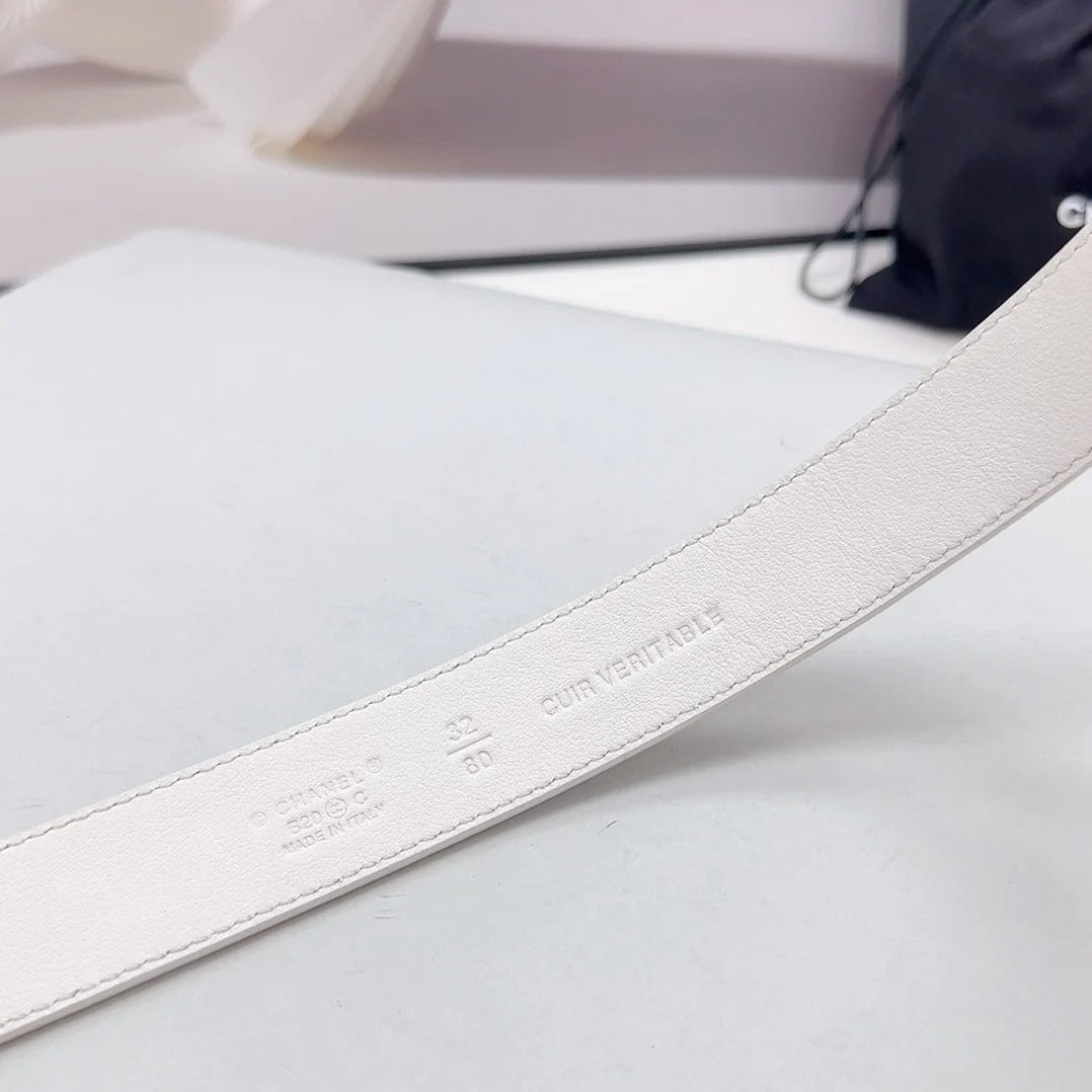 CC 30MM BELT IN FULL WHITE SMOOTH CALFSKIN METAL HARDWARE
