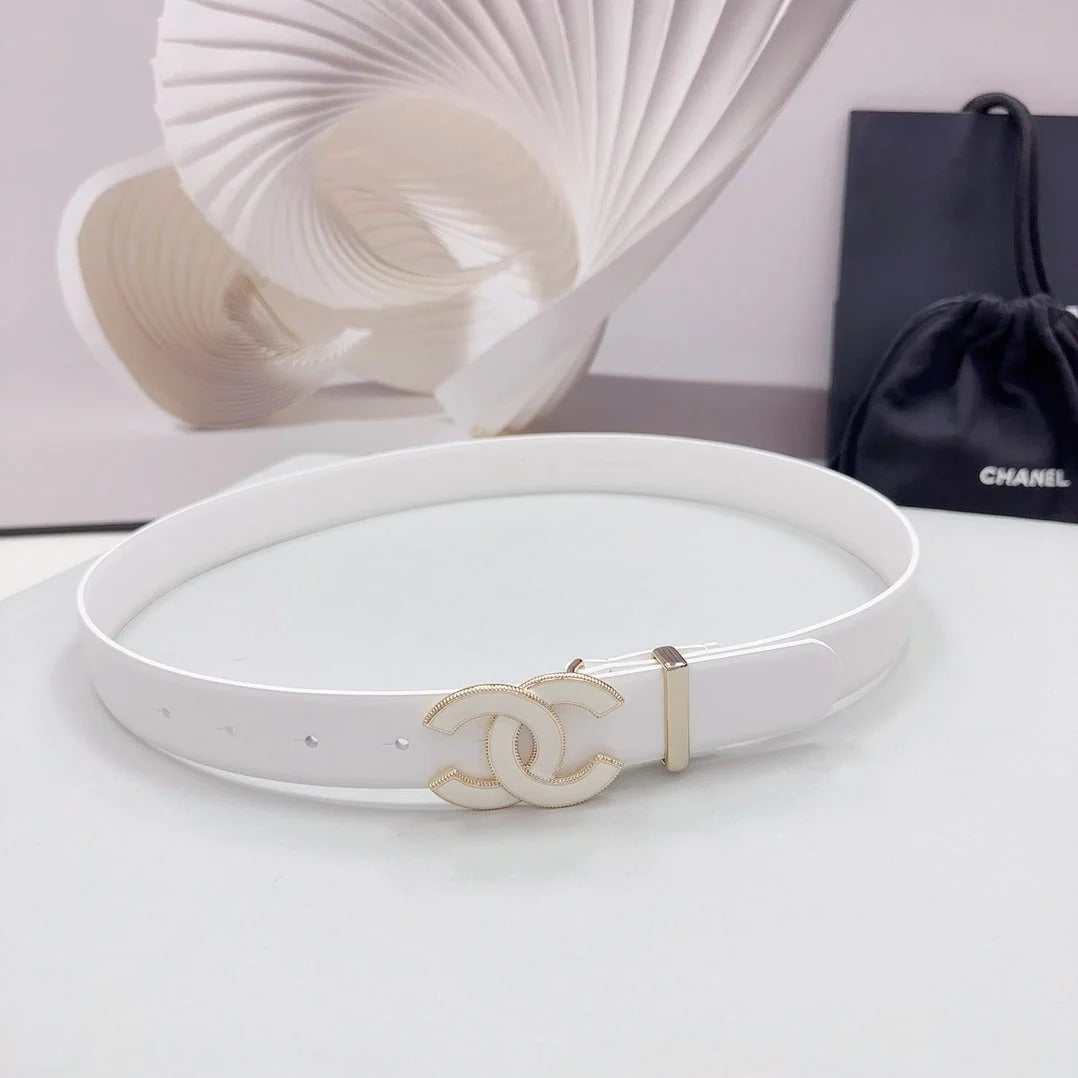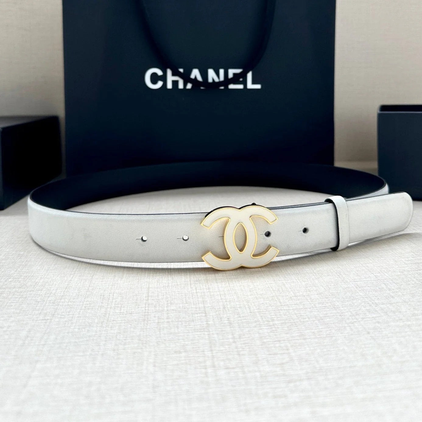 CC 30MM BELT IN WHITE SMOOTH CALFSKIN METAL HARDWARE