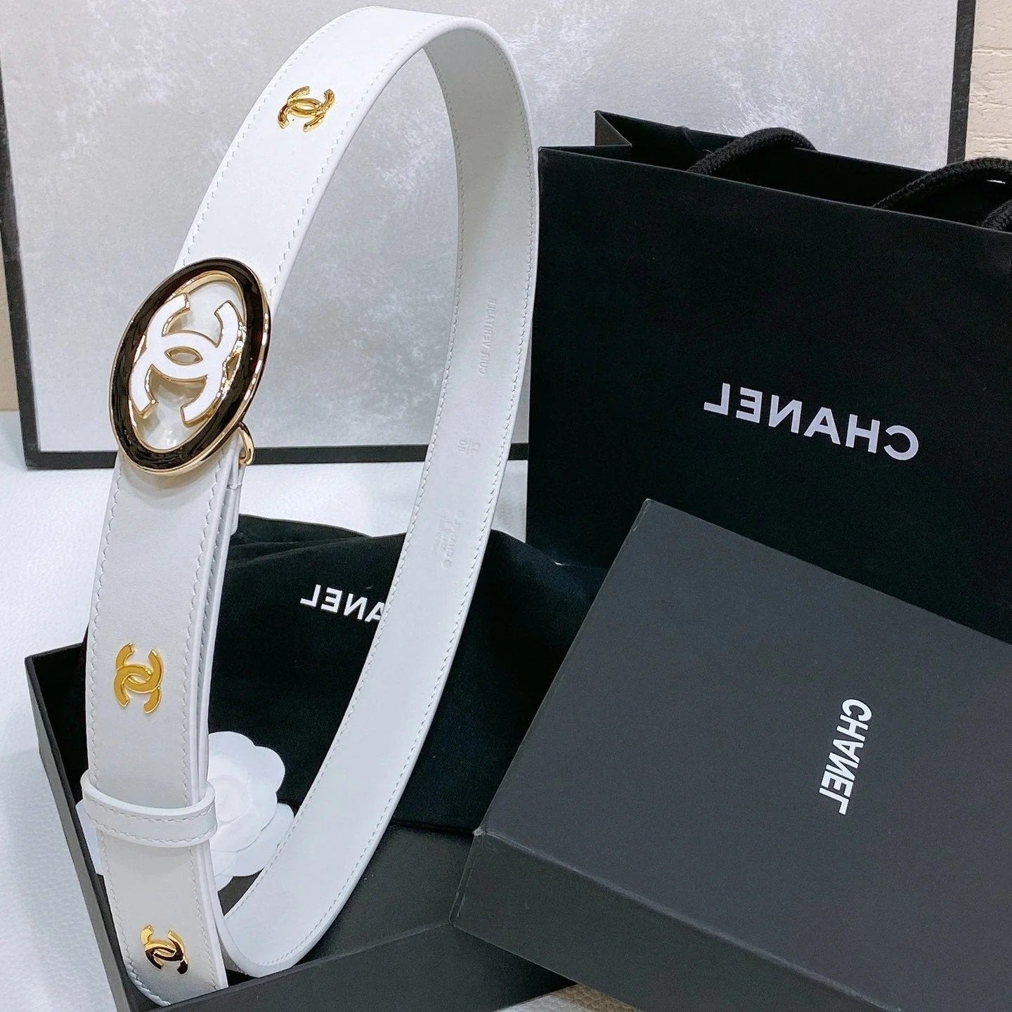 CC 30MM BELT IN WHITE SMOOTH CALFSKIN METAL LOGO GOLD HARDWARE