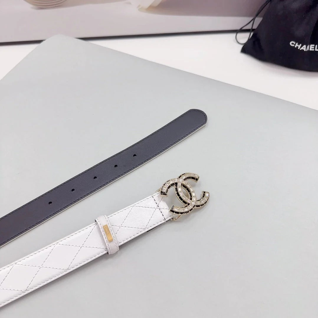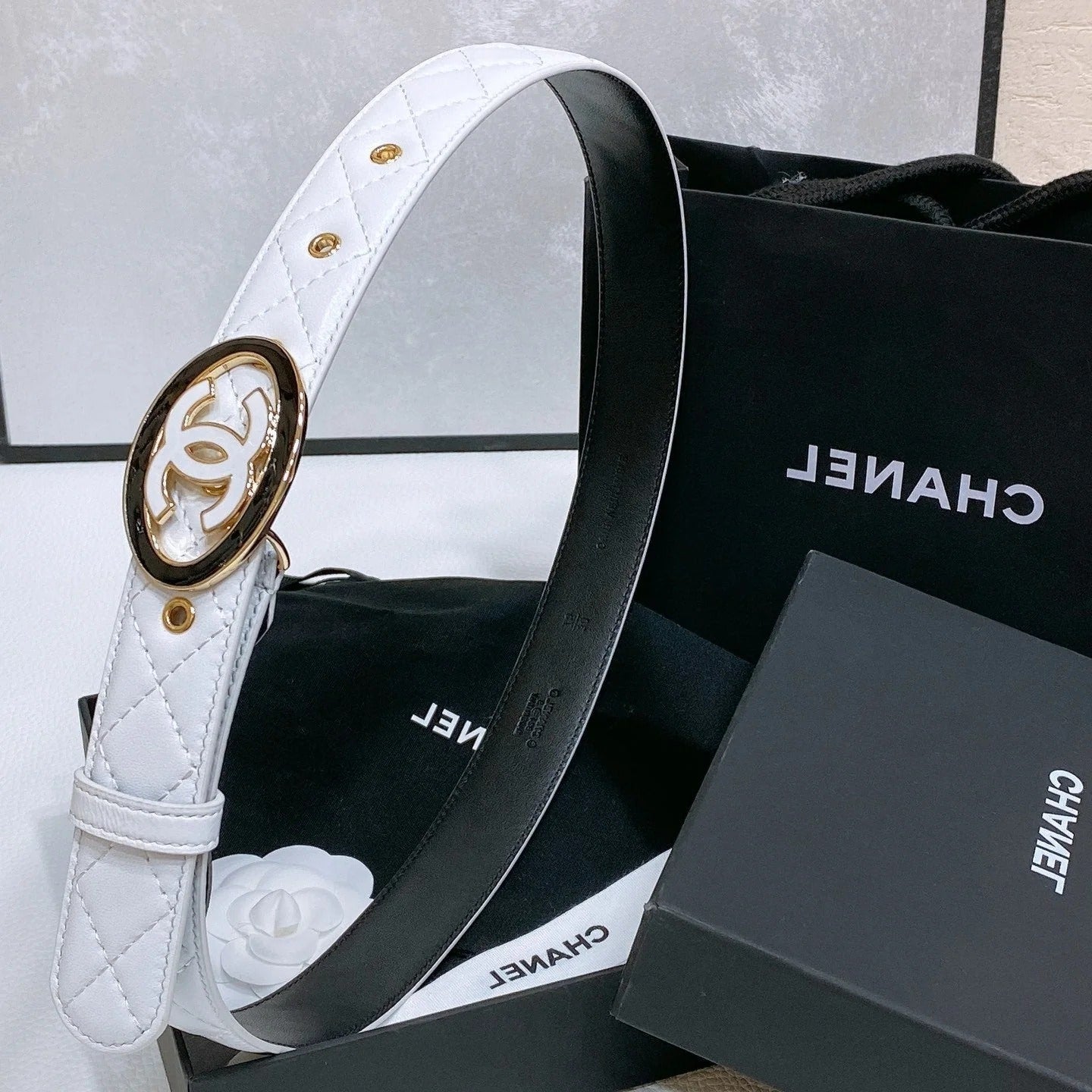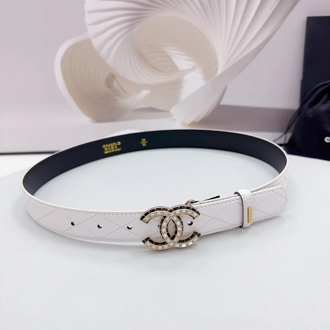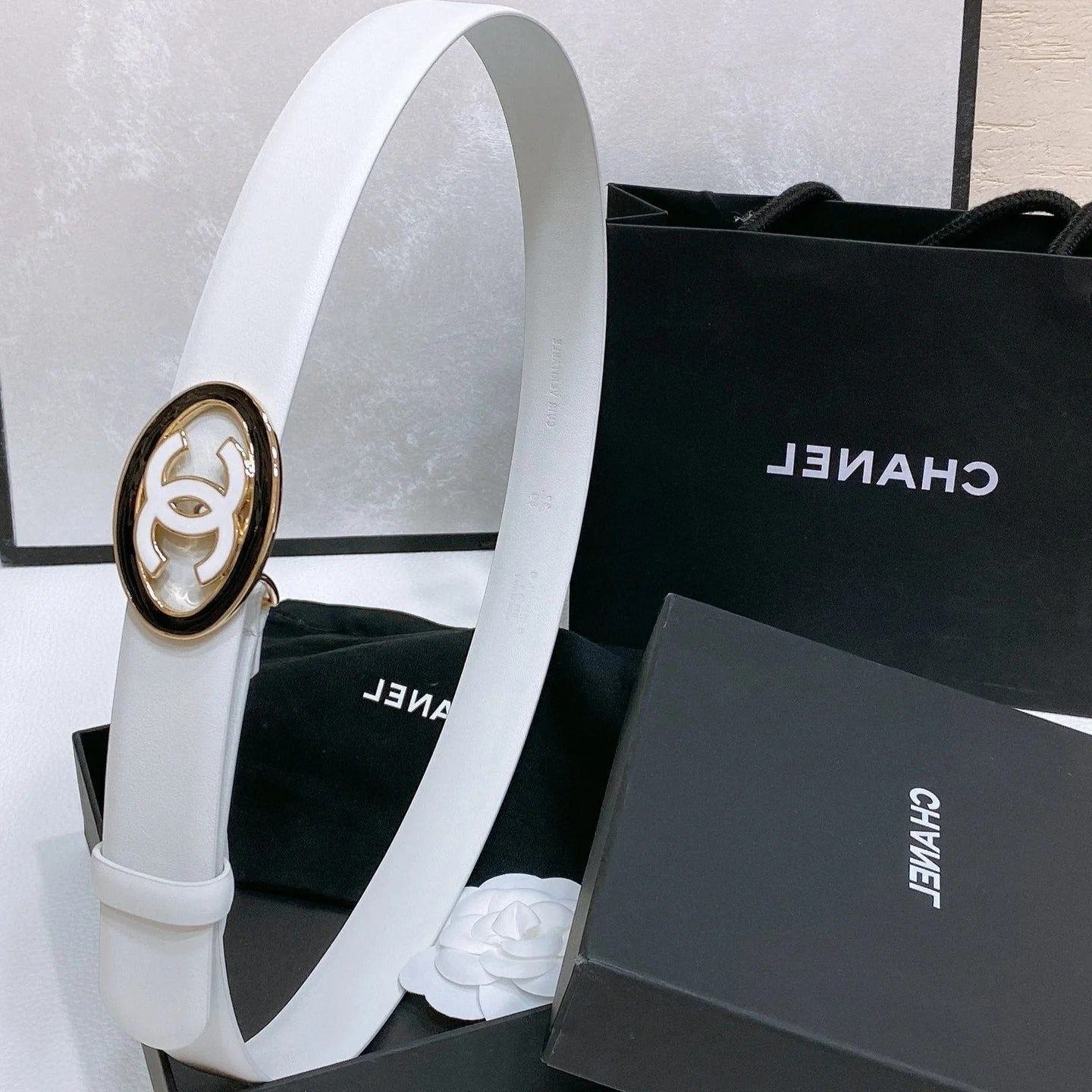 CC 30MM BELT IN WHITE SMOOTH CALFSKIN WHITE MIX BLACK METAL HARDWARE