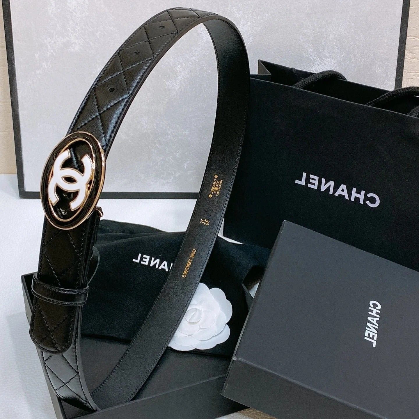 CC 30MM BELT IN BLACK SMOOTH CALFSKIN WHITE MIX BLACK METAL LOGO GOLD HARDWARE