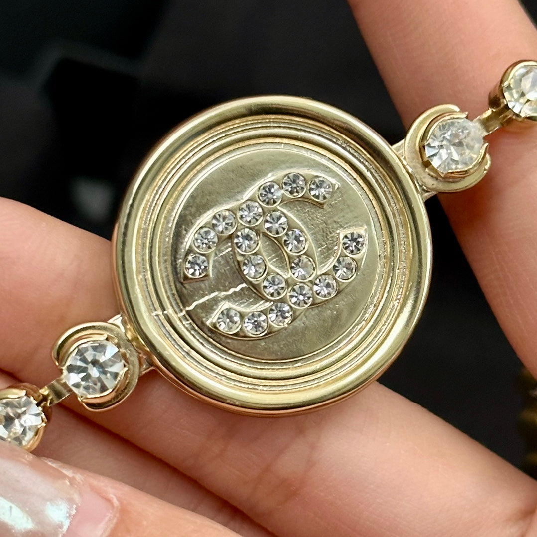 CHANEL BELT 3CM CINNAMON BROWN LAMBSKIN WITH CRYSTAL GOLD HARDWARE