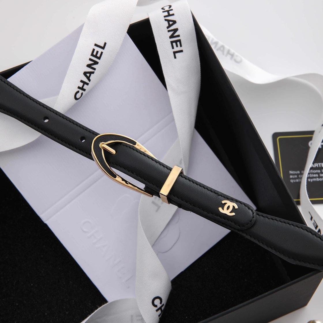 CHANEL BELT 3CM IN BLACK LAMBSKIN WITH GOLD HARDWARE LOGO
