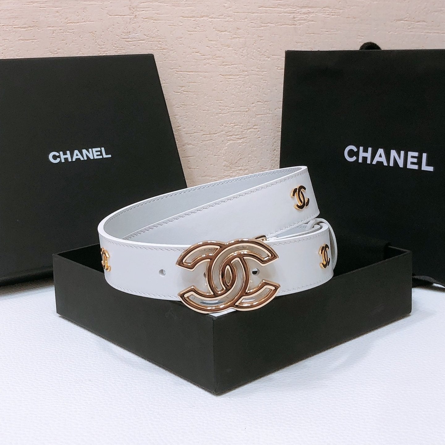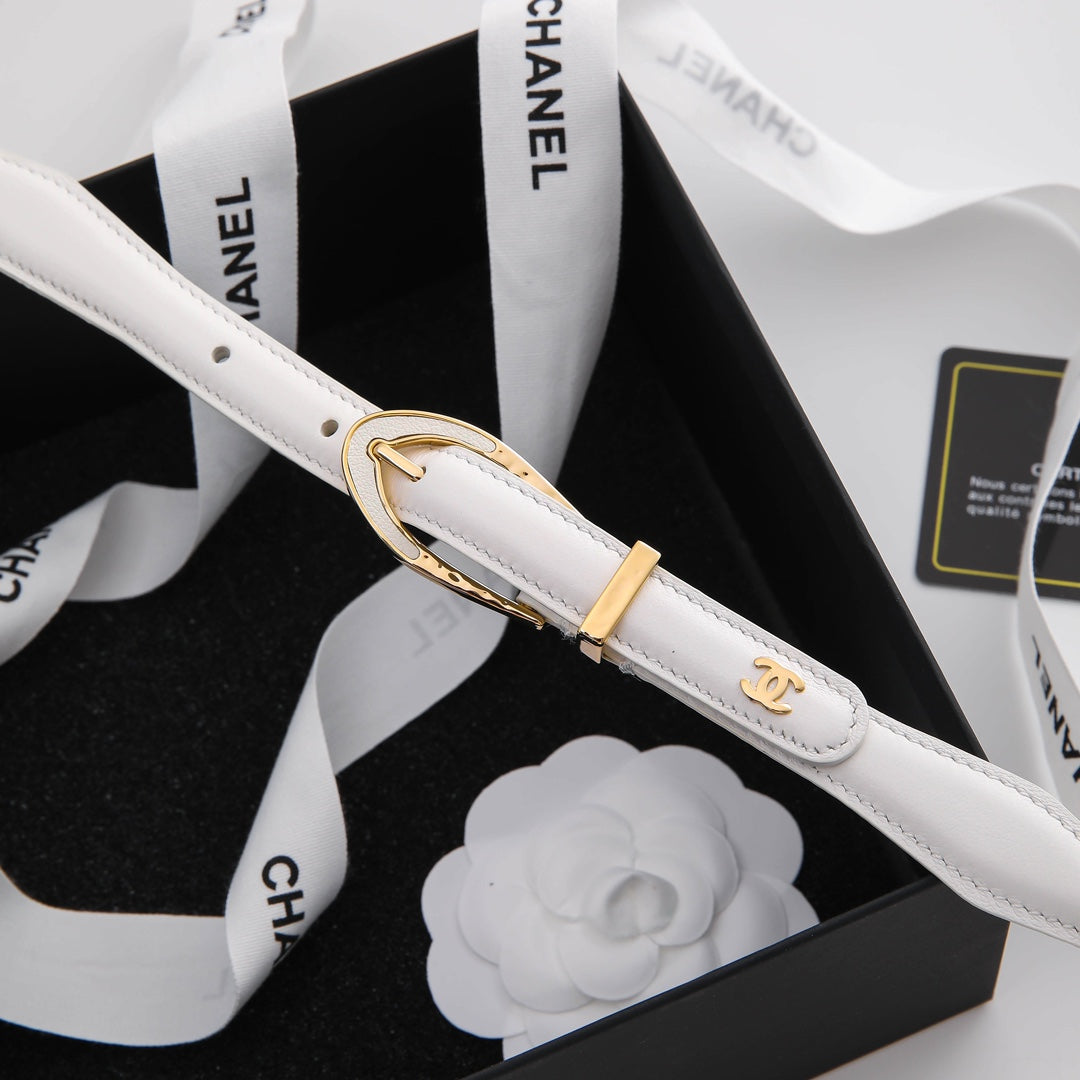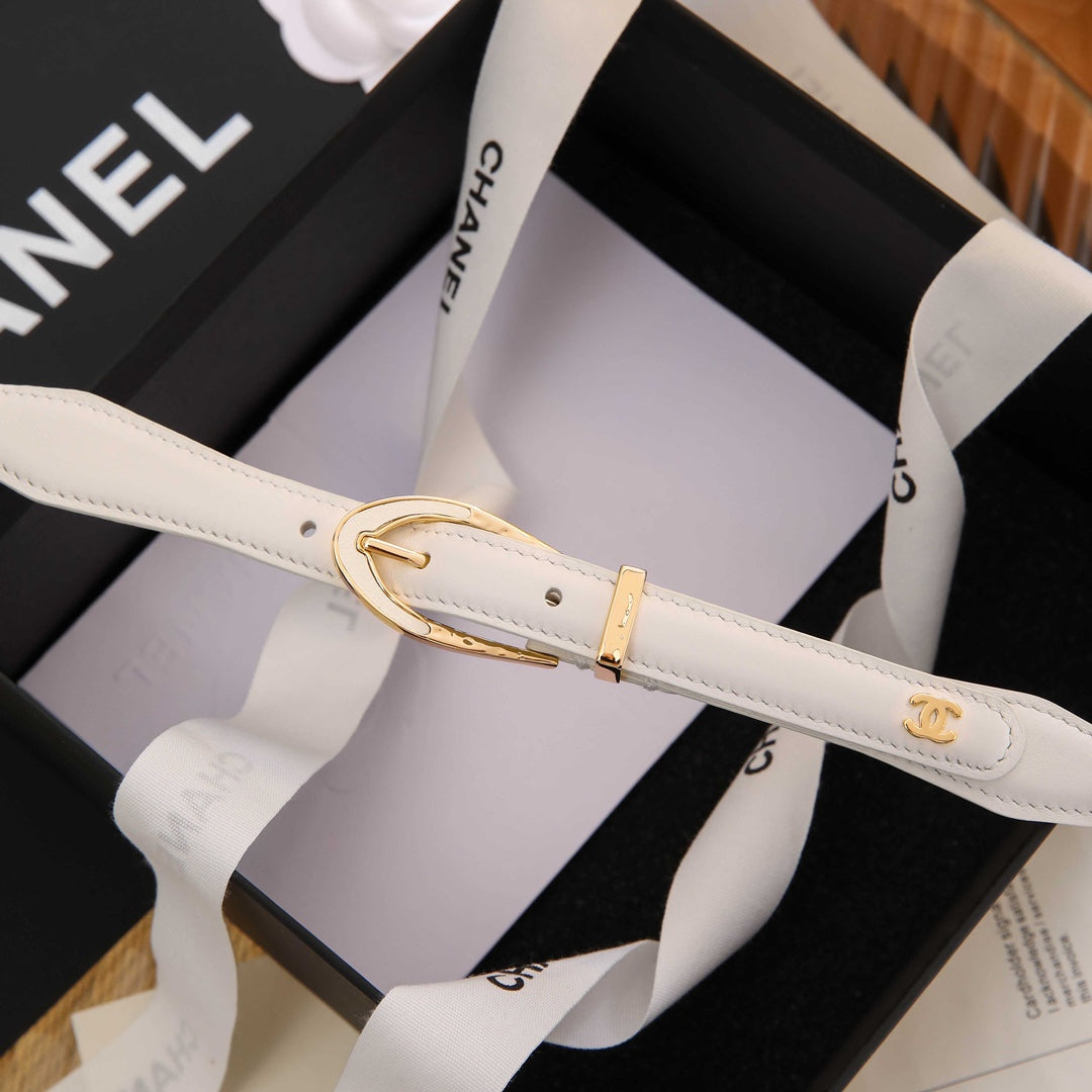 CHANEL BELT 3CM IN WHITE LAMBSKIN WITH GOLD HARDWARE LOGO