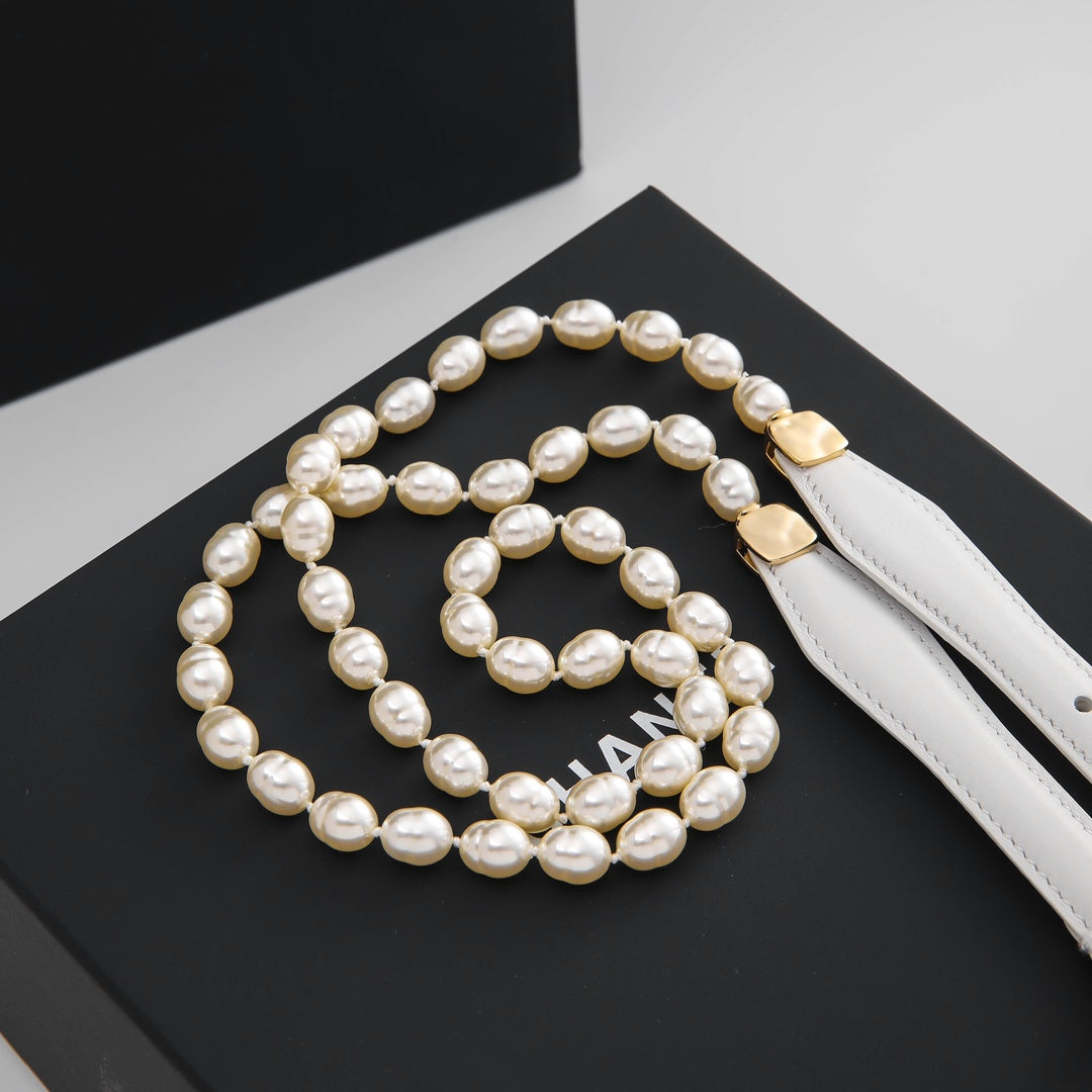CHANEL BELT 3CM IN WHITE LAMBSKIN WITH GOLD HARDWARE