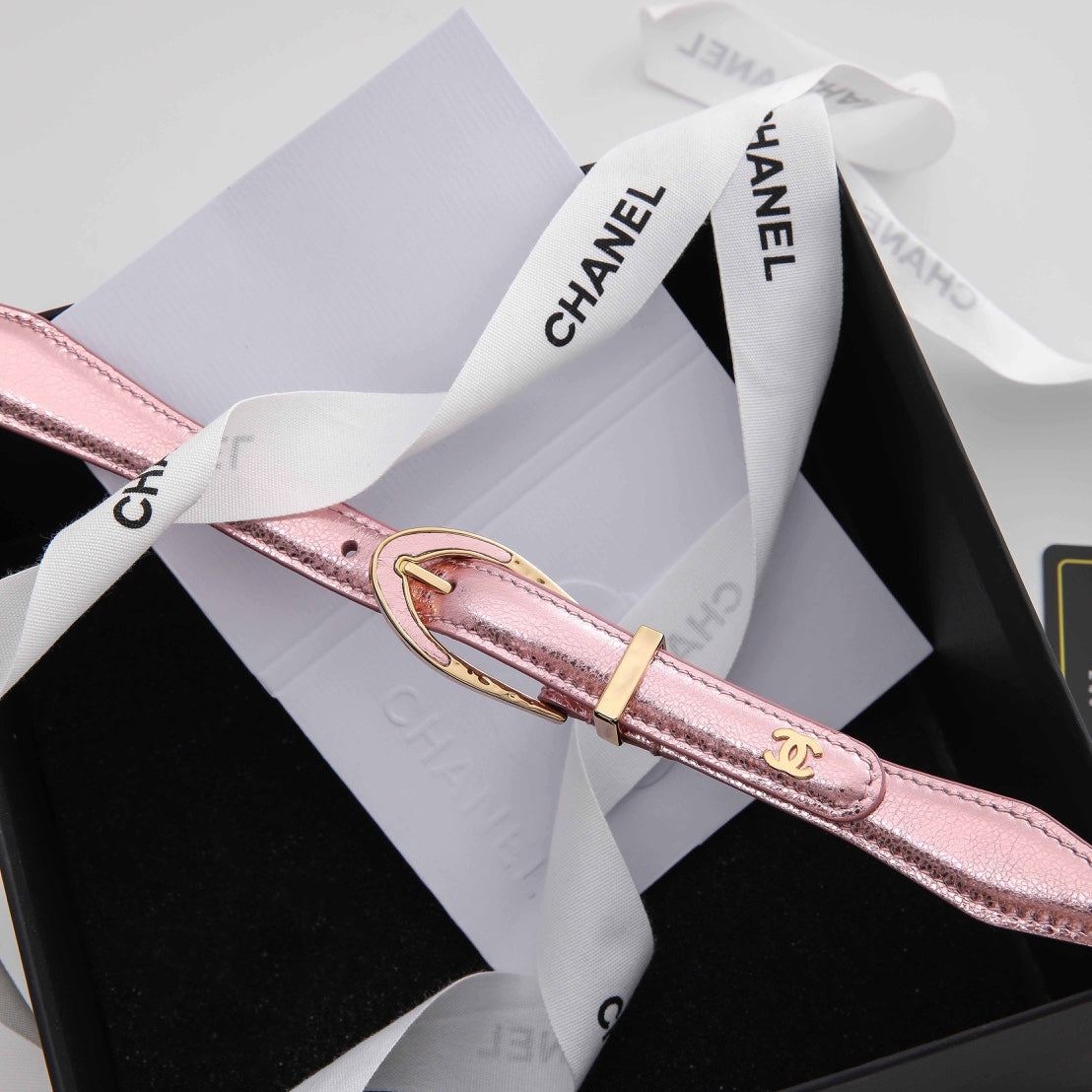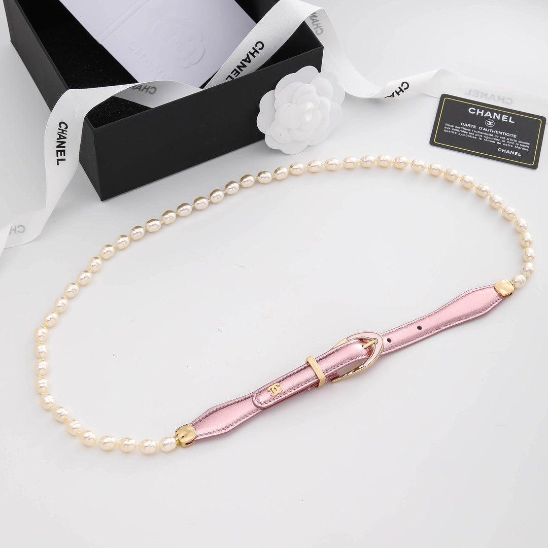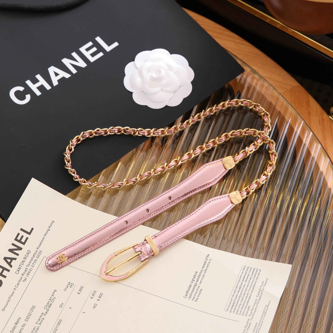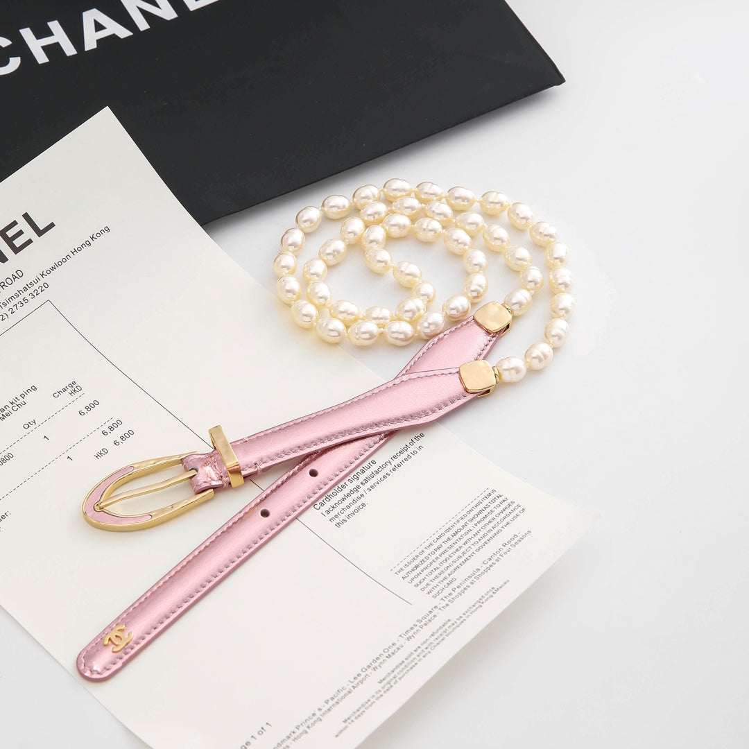 CHANEL BELT 3CM IN LIGHT PINK LAMBSKIN WITH CRYSTAL GOLD HARDWARE
