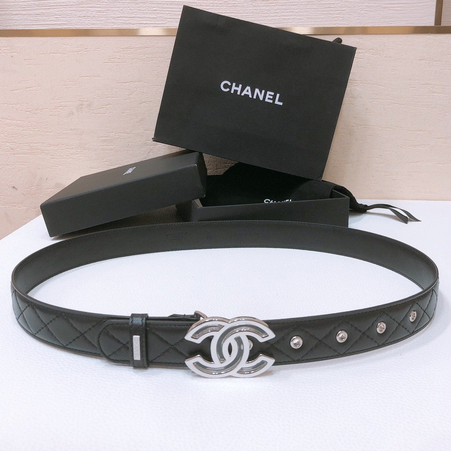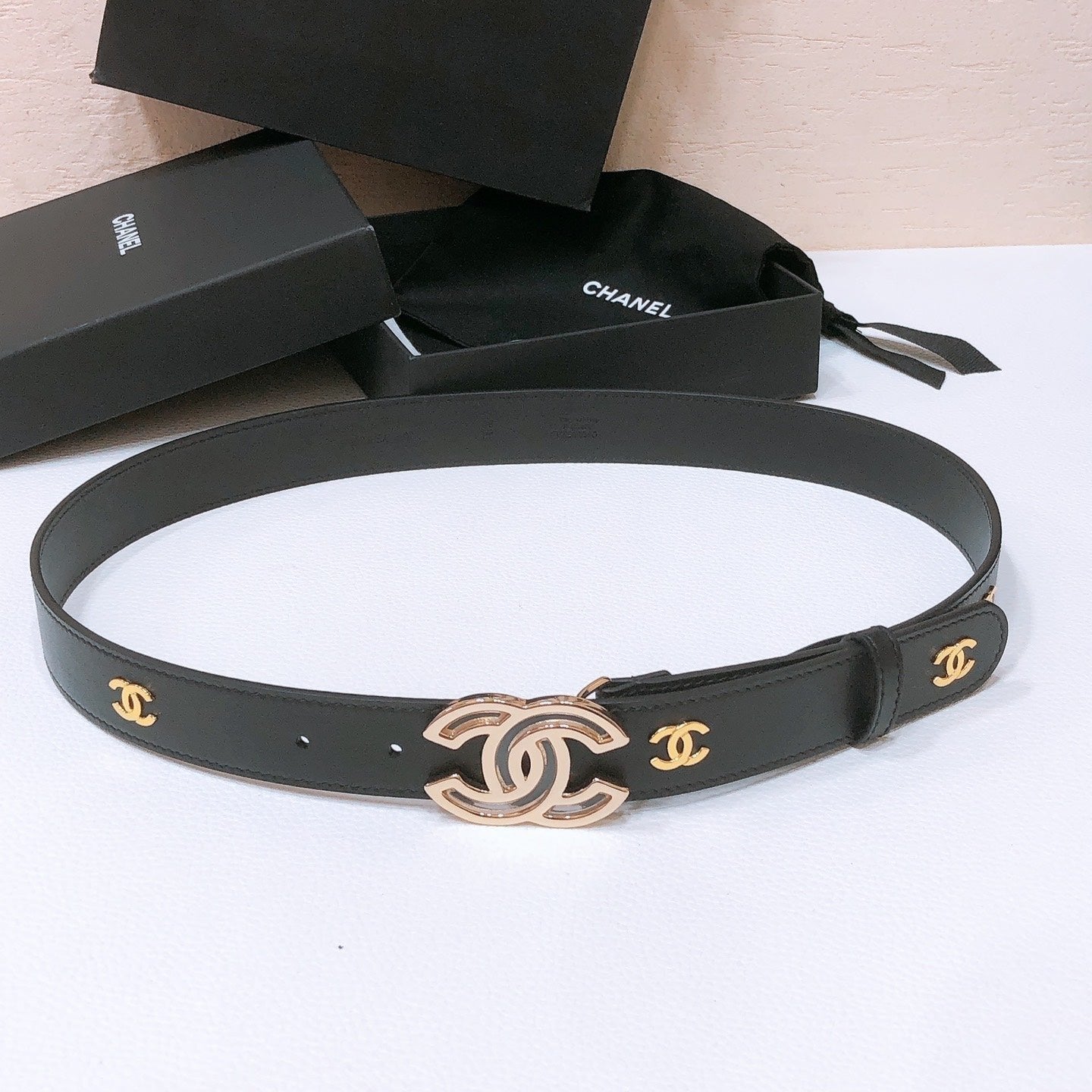 CHANEL BELT 3CM IN BLACK LAMBSKIN GOLD HARDWARE