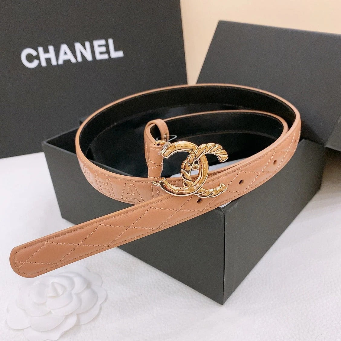 CHANEL BELT 3CM IN ROSY BROWN LAMBSKIN GOLD HARDWARE