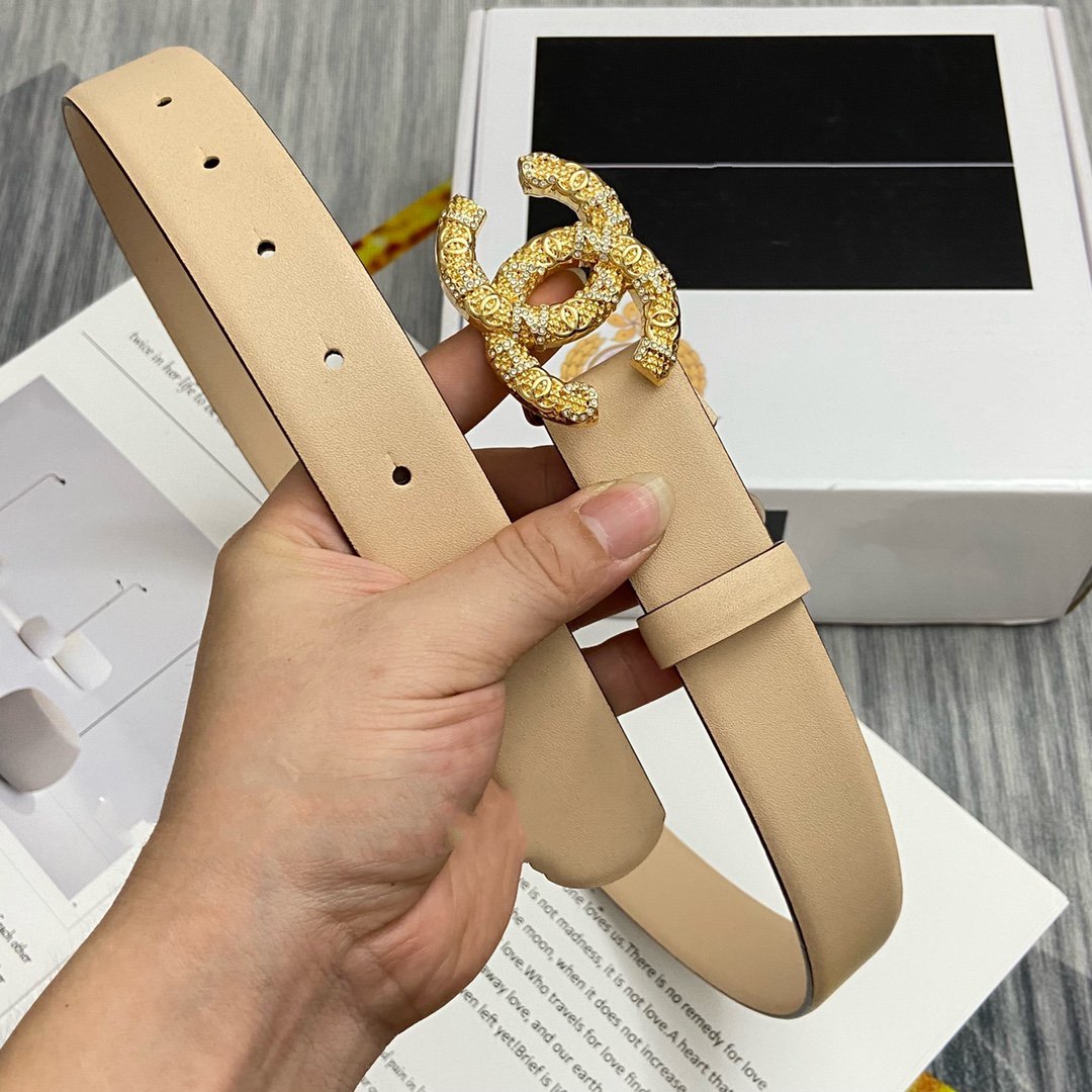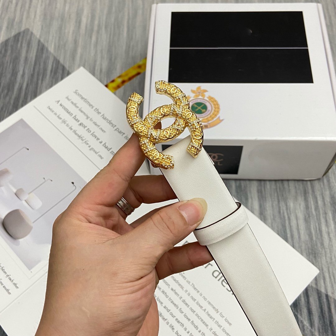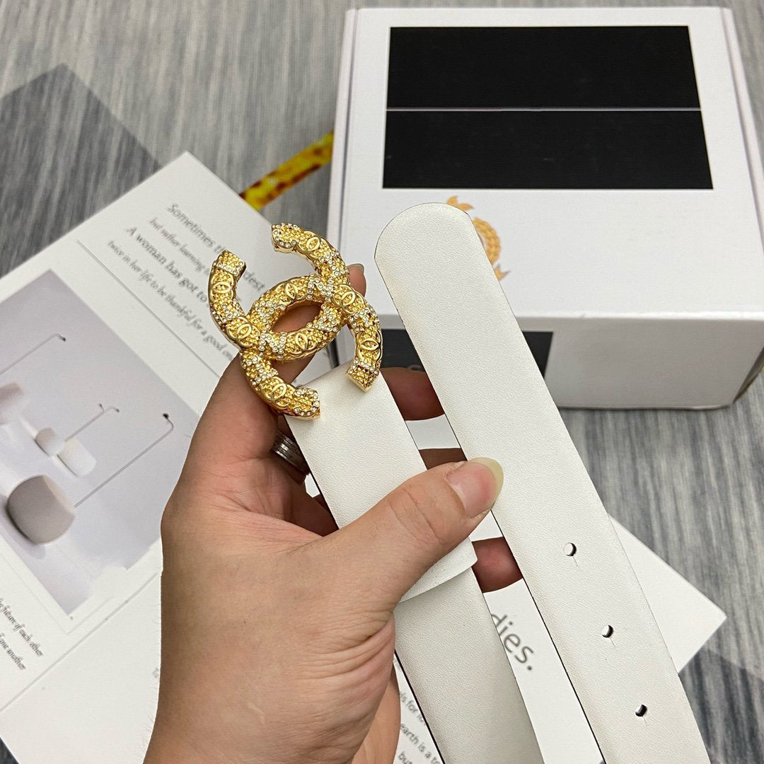 CC BELT 3.0CM LEATHER WHITE BUCKLE GOLD PEARL DIAMOND