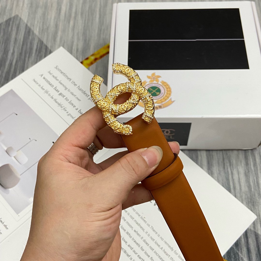 CC WOMEN'S BELT 3.0CM LEATHER LIGHT BROWN BUCKLE GOLD
