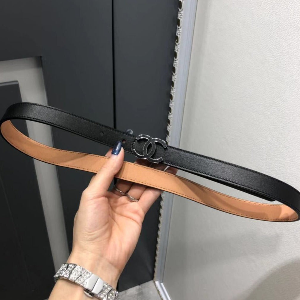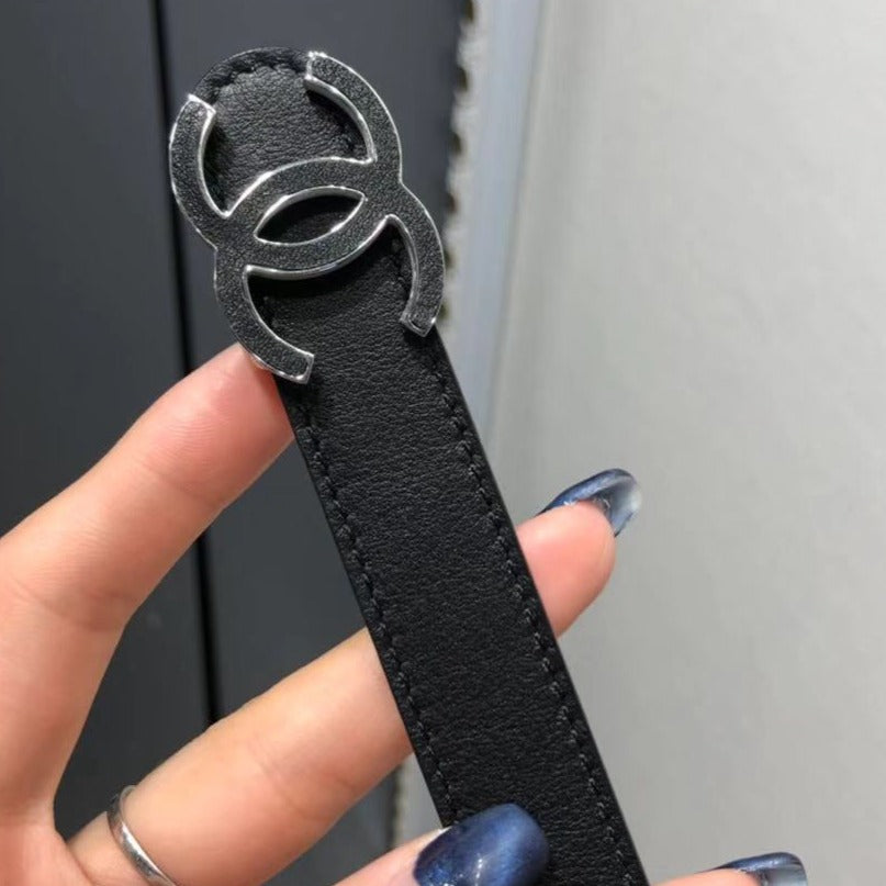 CC WOMEN'S BELT 3.0CM LEATHER BLACK BUCKLE SILVER