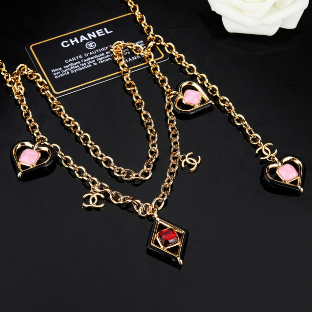 CC BELT 3.0CM LEATHER RED BUCKLE GOLD PEARL DIAMOND
