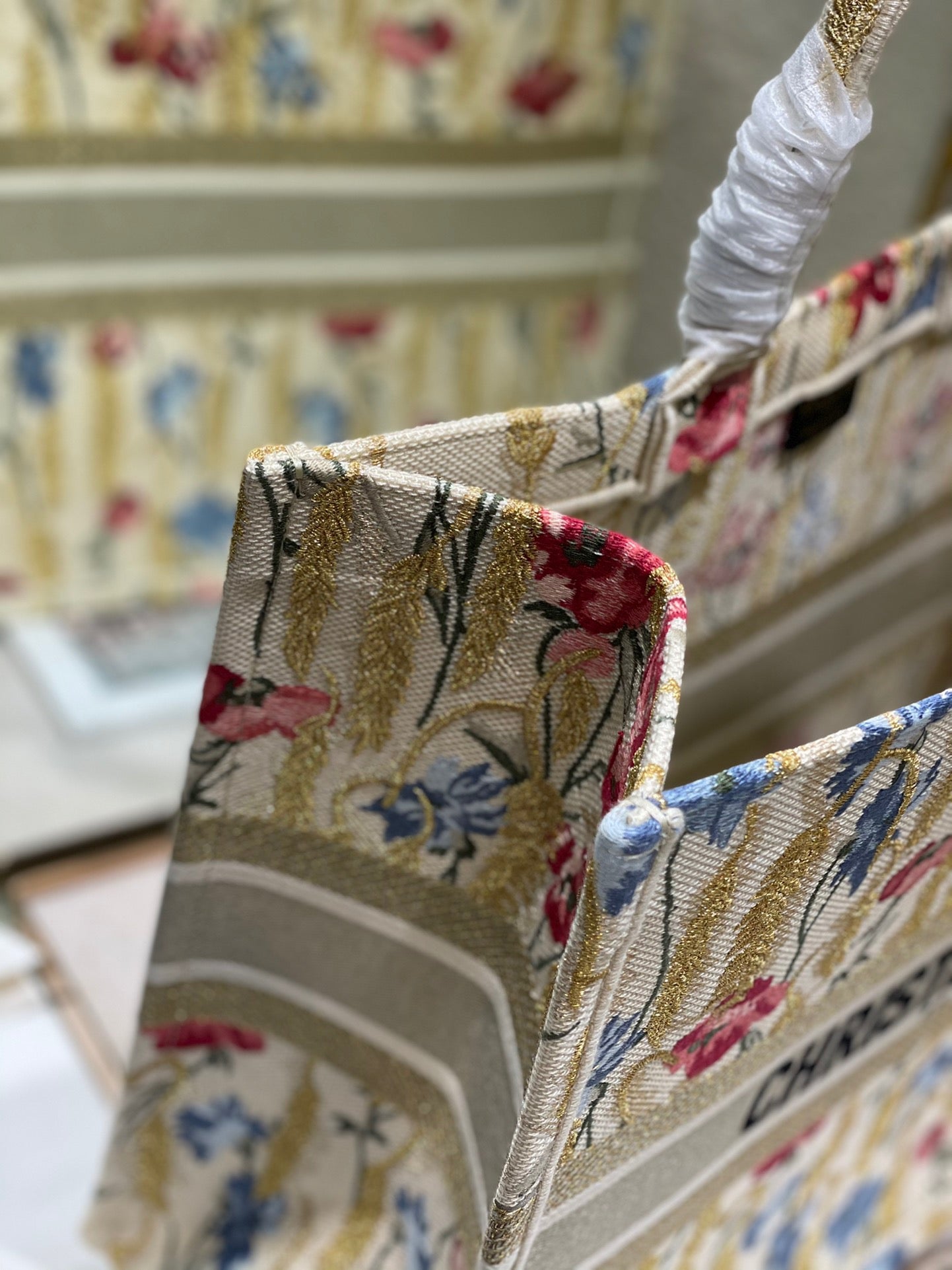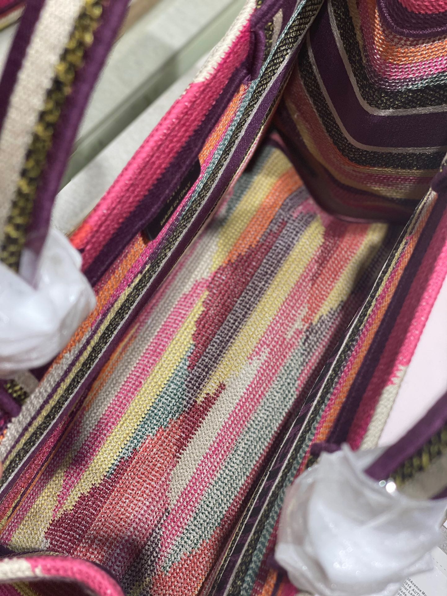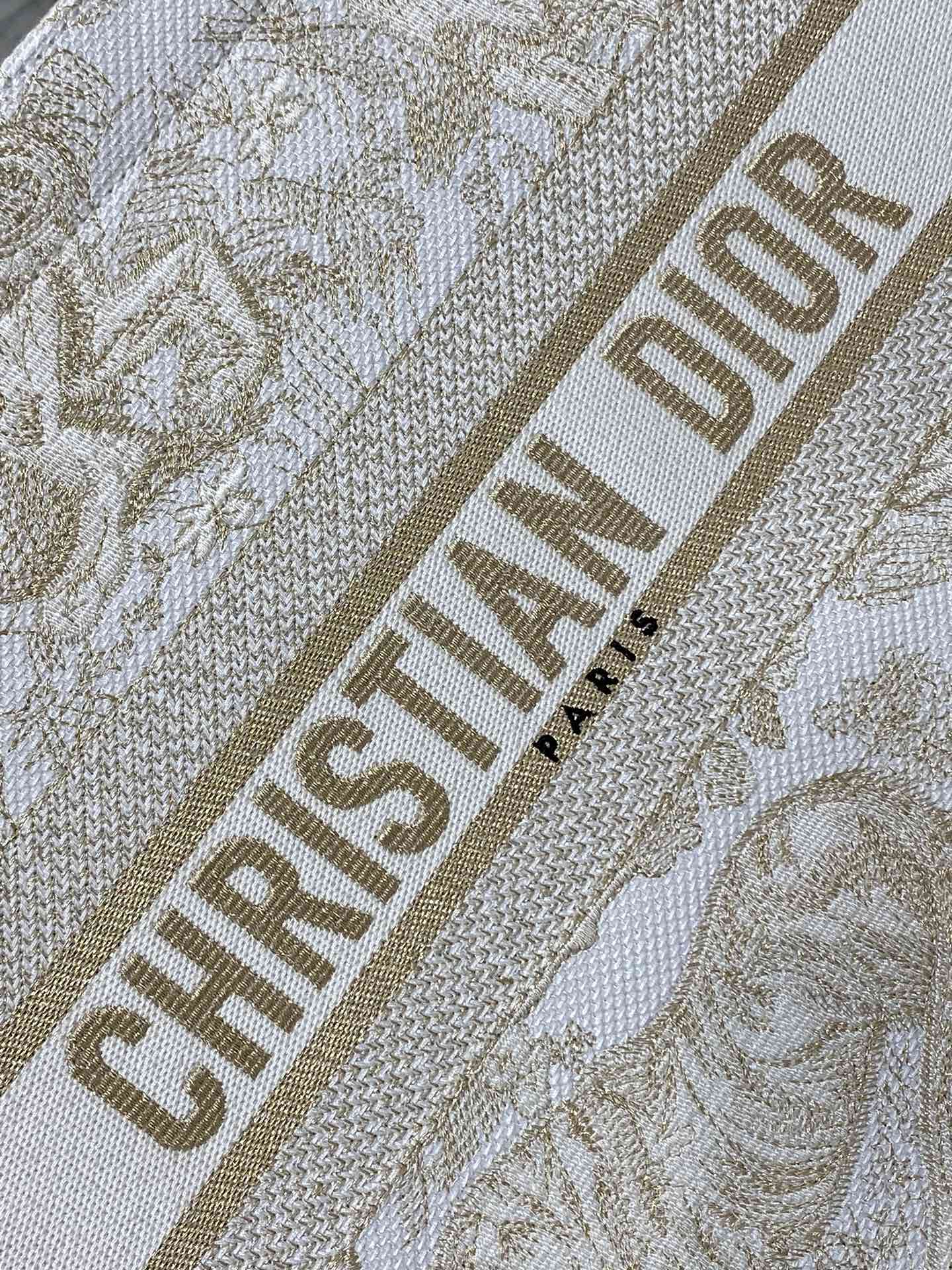 CD Medium Dior Book Tote Tiger Motif White Beige Cotton