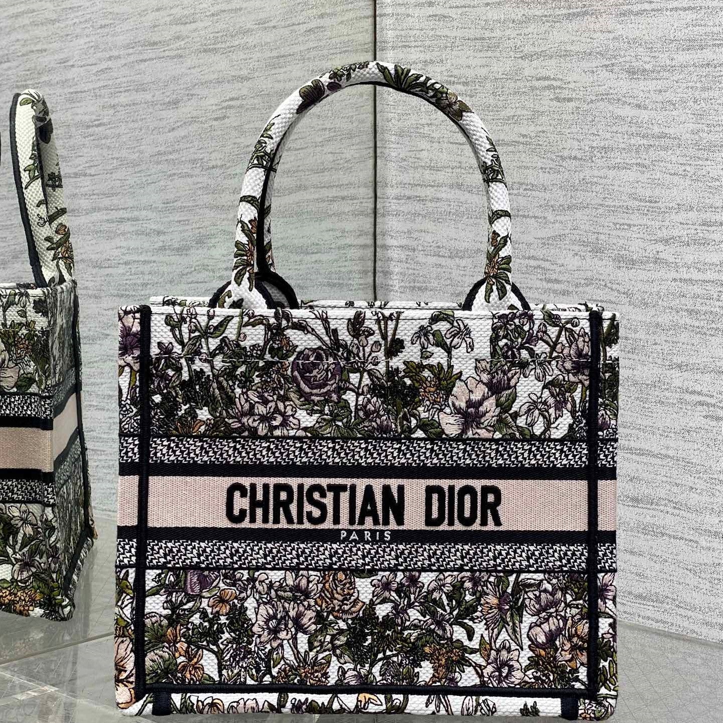 CD Small Dior Book Tote Full Floral Motif White Pink Cotton