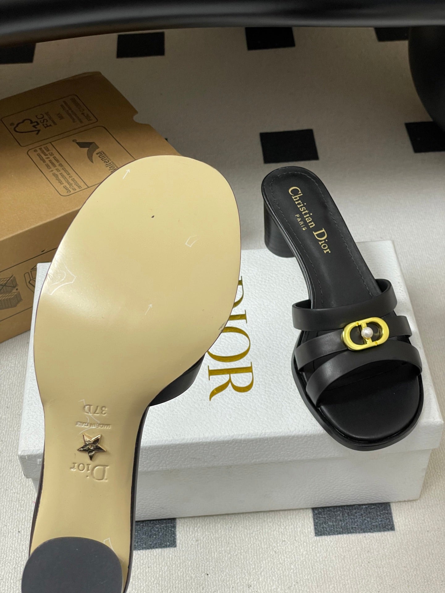 CD 26 Chunky Heel Sandals 50 Black Leather 593526