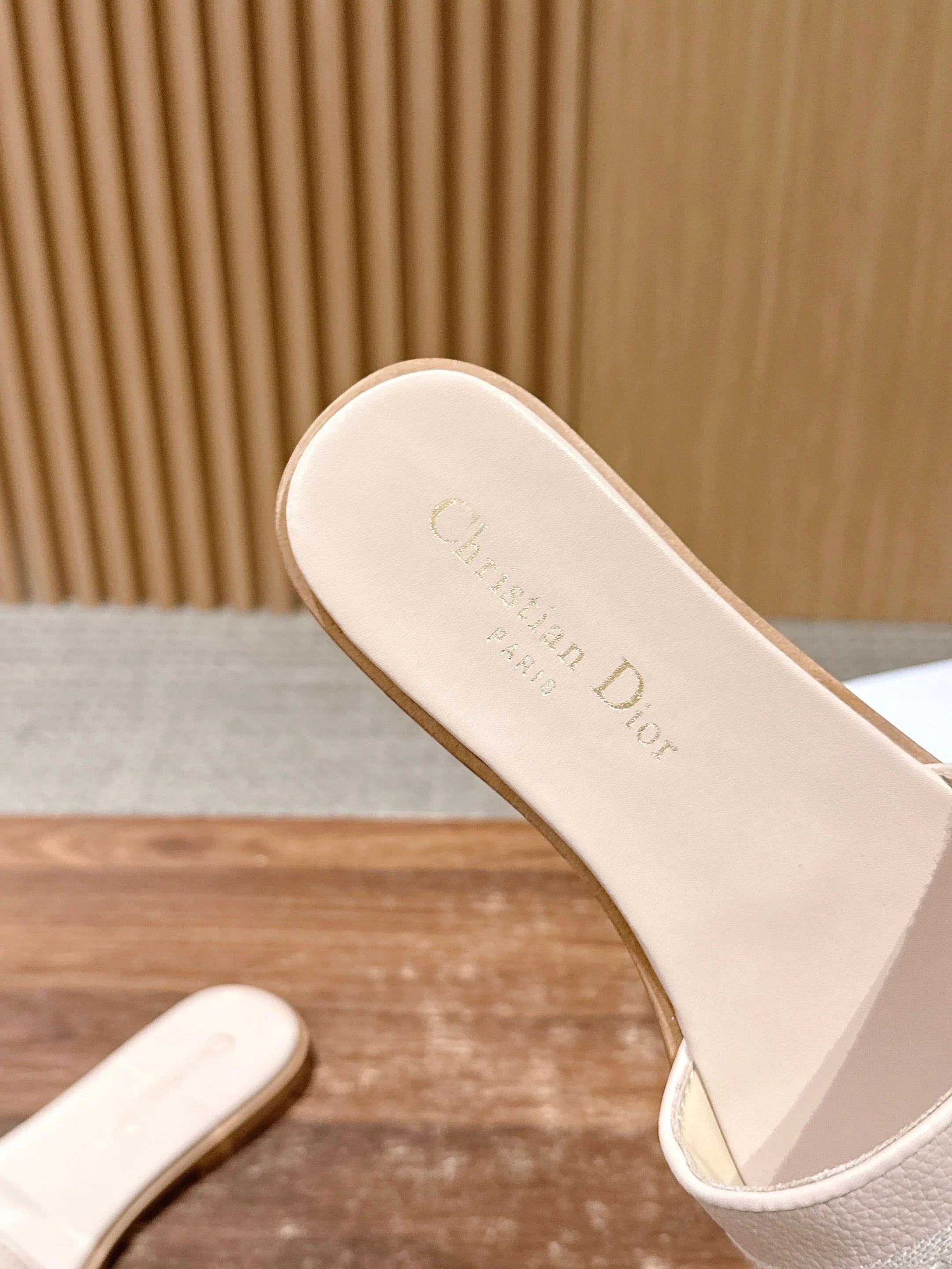 CD 26 Embroidered Slippers Beige Cowhide 610278