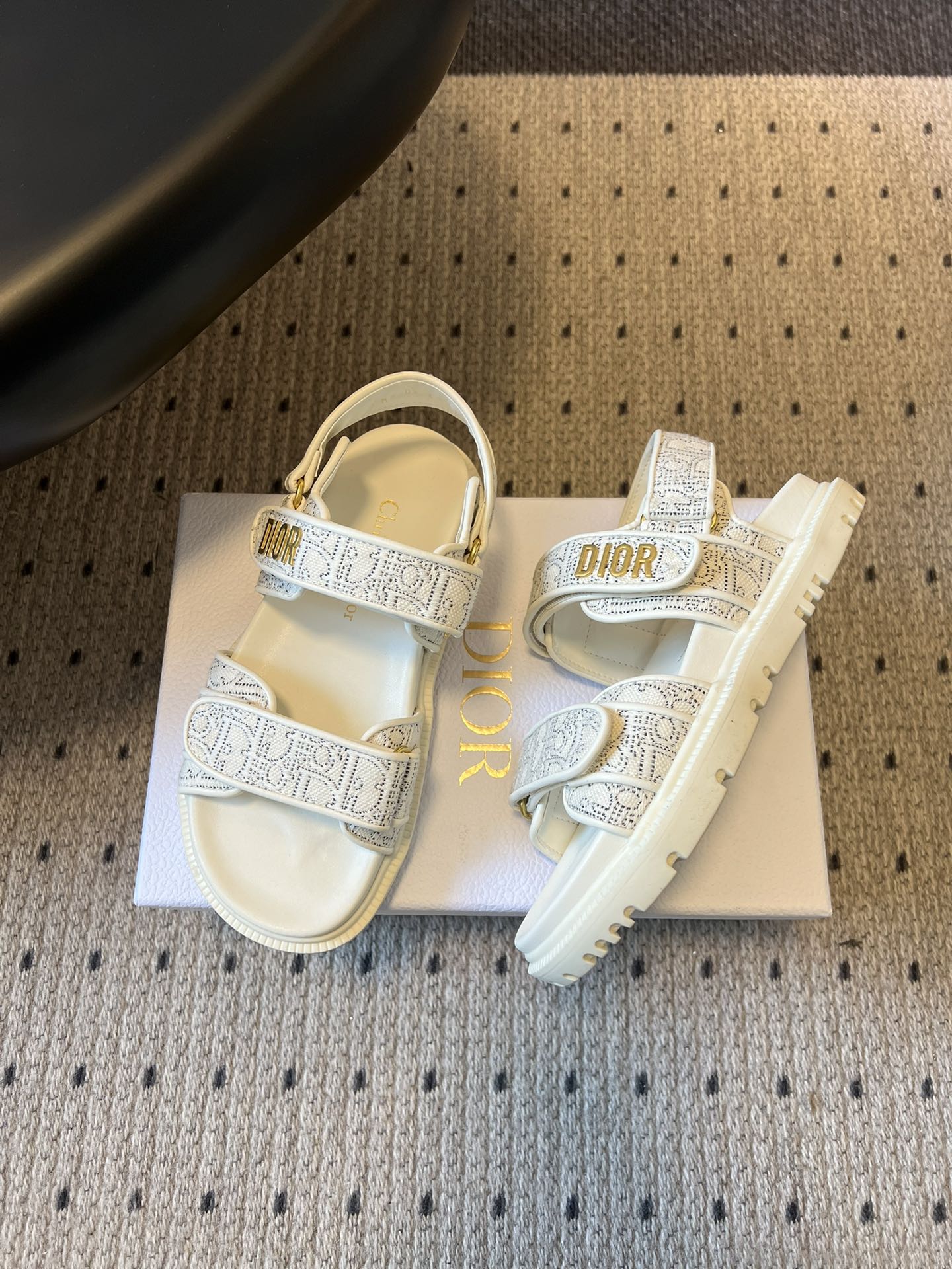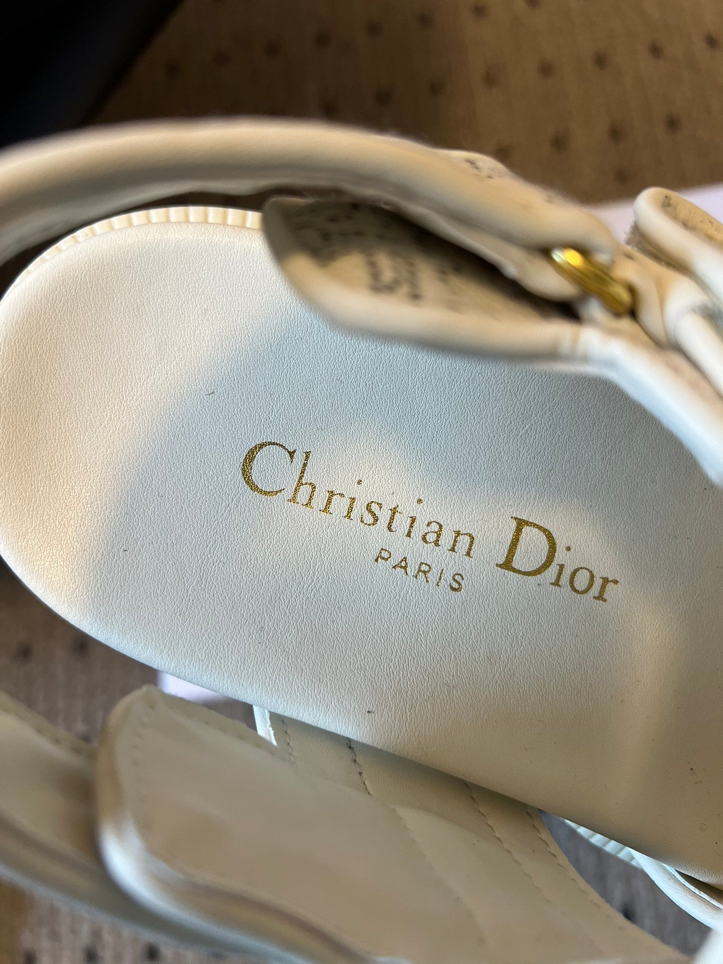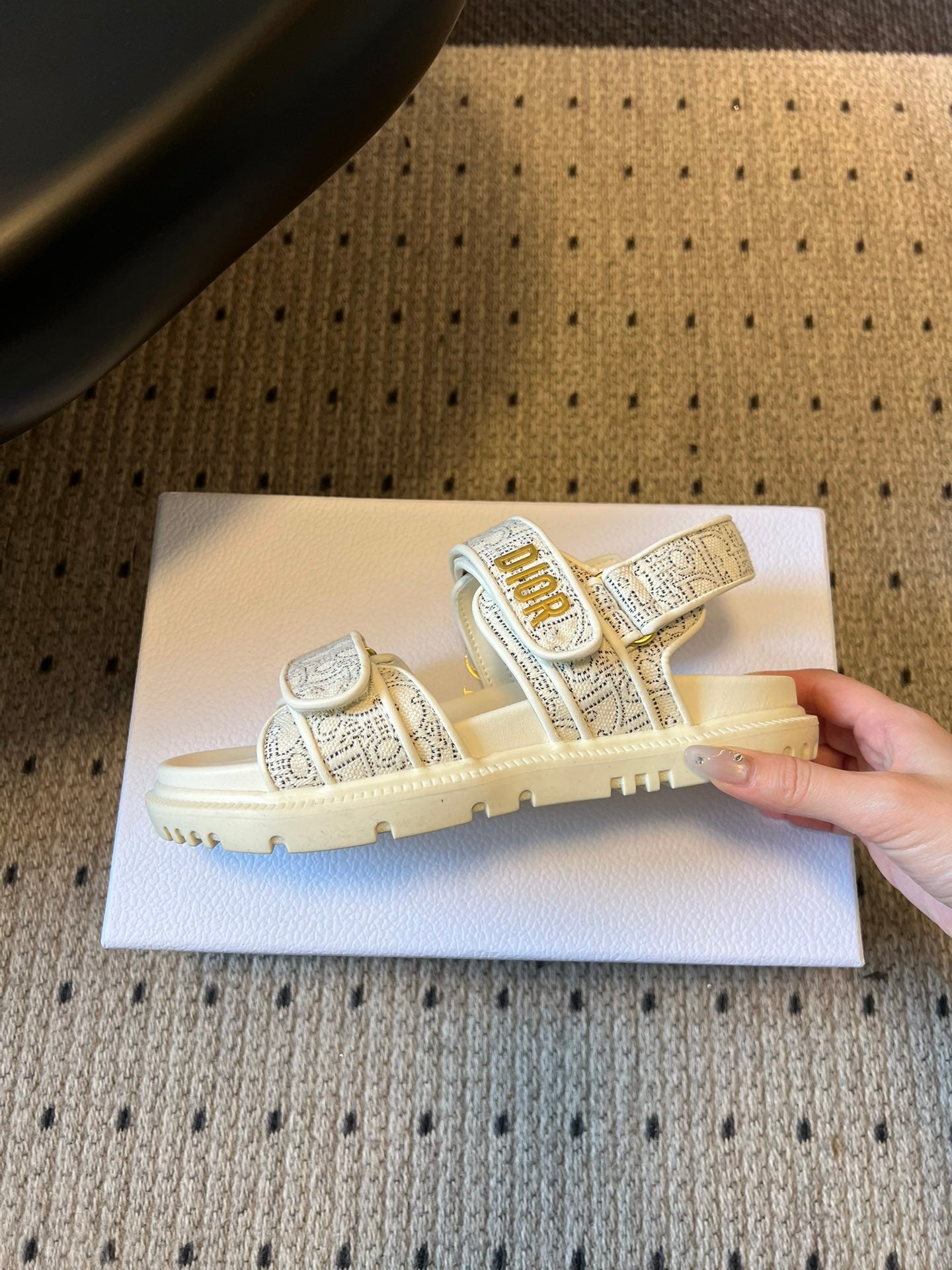 CD 26 Flats Sandals White Beige Sheepskin Embroidered Fabric 621798