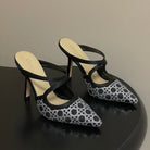 CD 26 High-Heeled Mules Black Diamond Mesh Sheepskin 593590