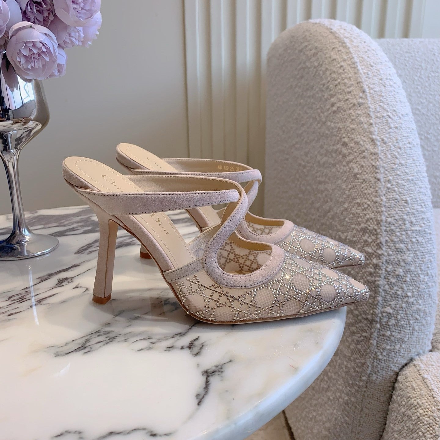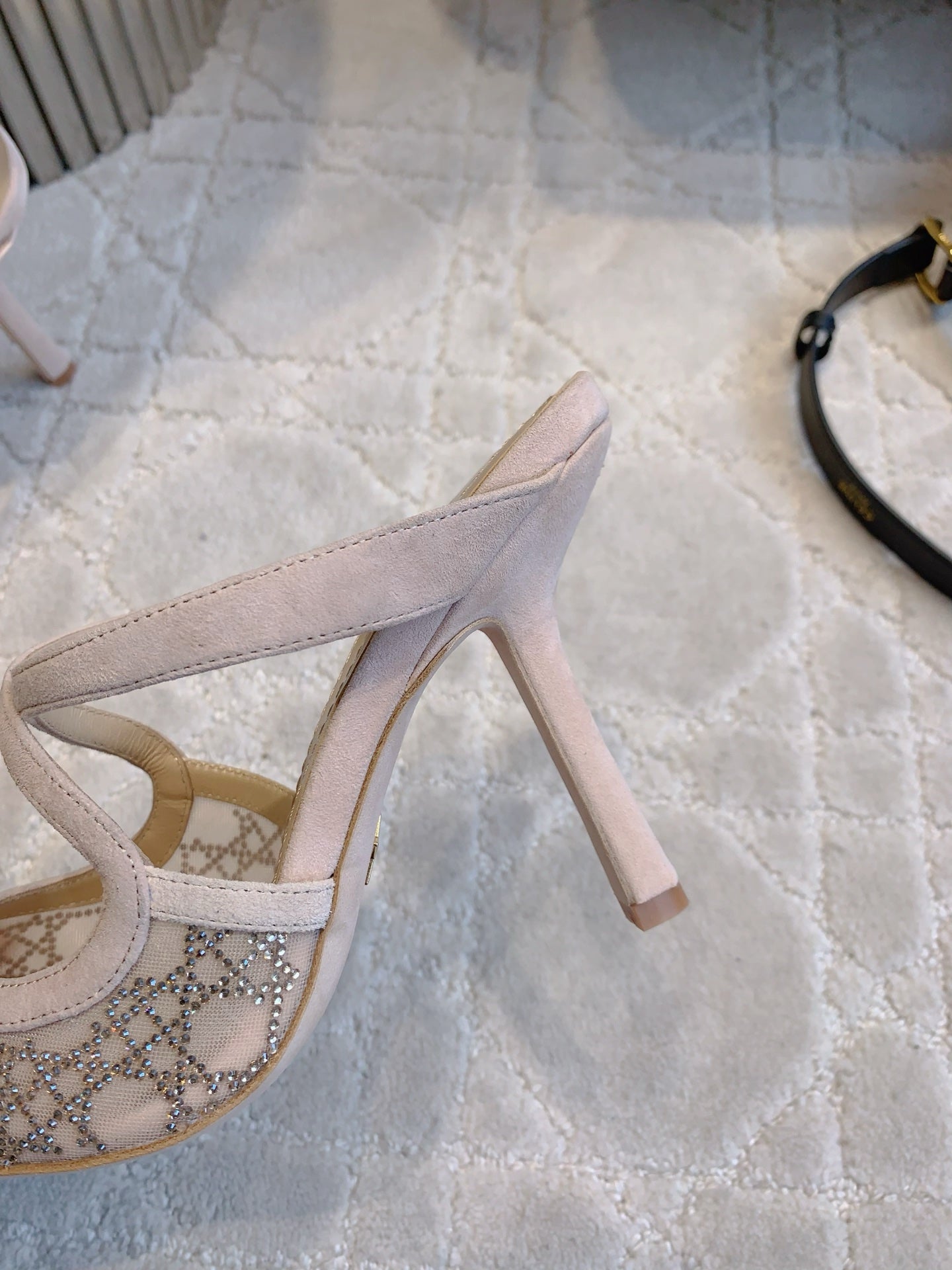 CD Capture Heeled Mule 10cm Beige Suede Mesh 615466