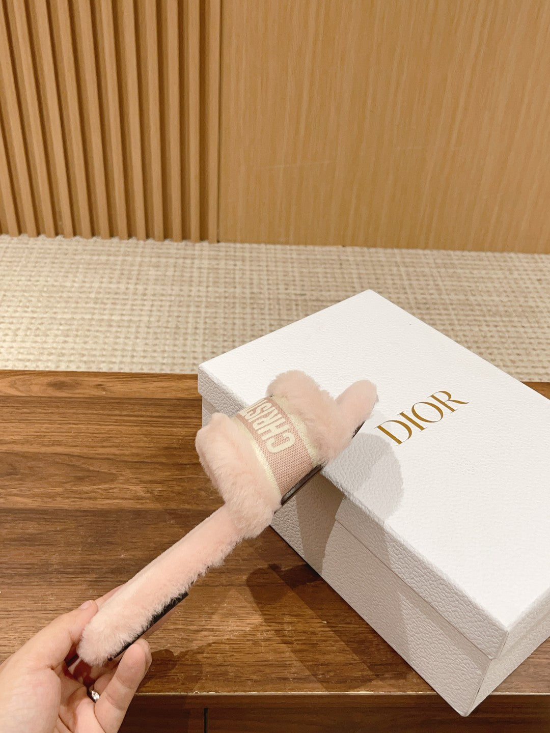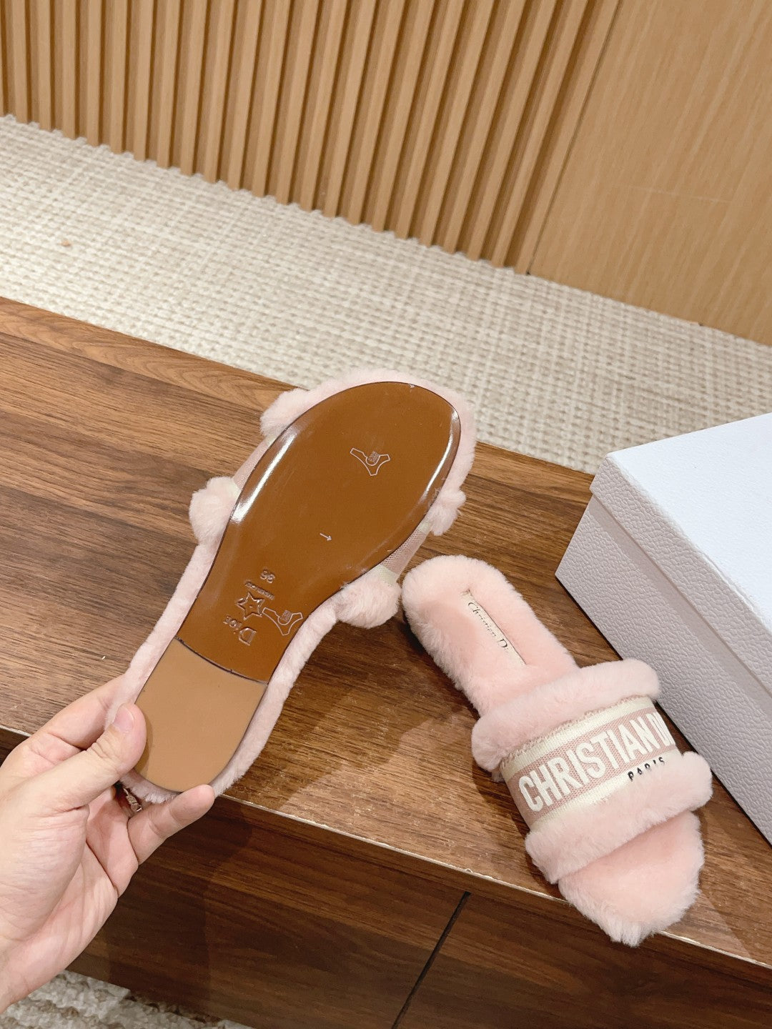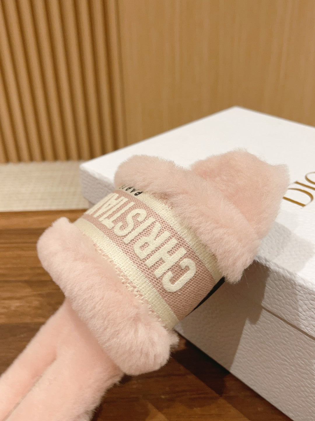 CD Dway Slide Pastel Pink Fleece Lining And Canvas Fabric