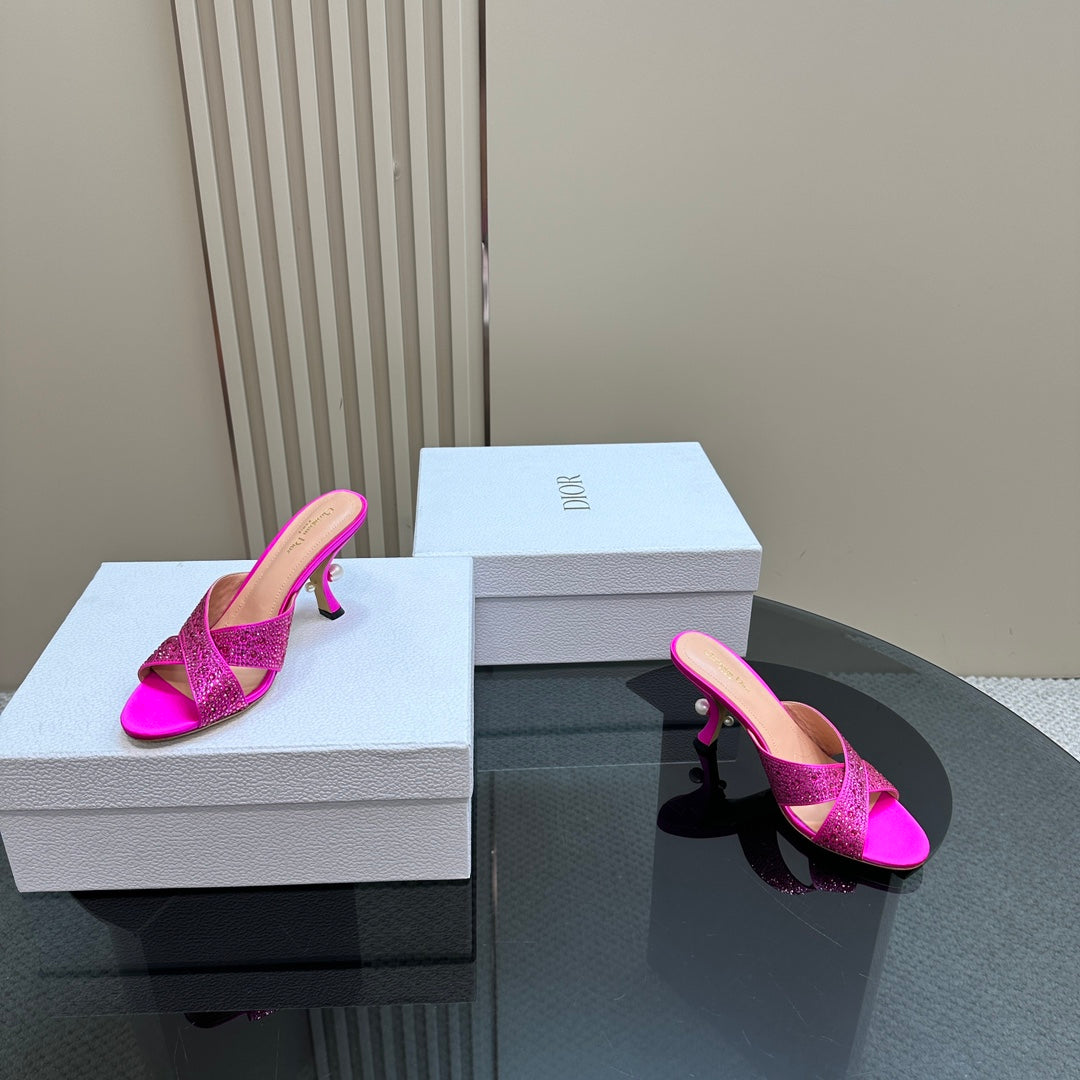 CD Tribales Heeled Slide 80mm Dark Pink Lambskin And Studded With Stones