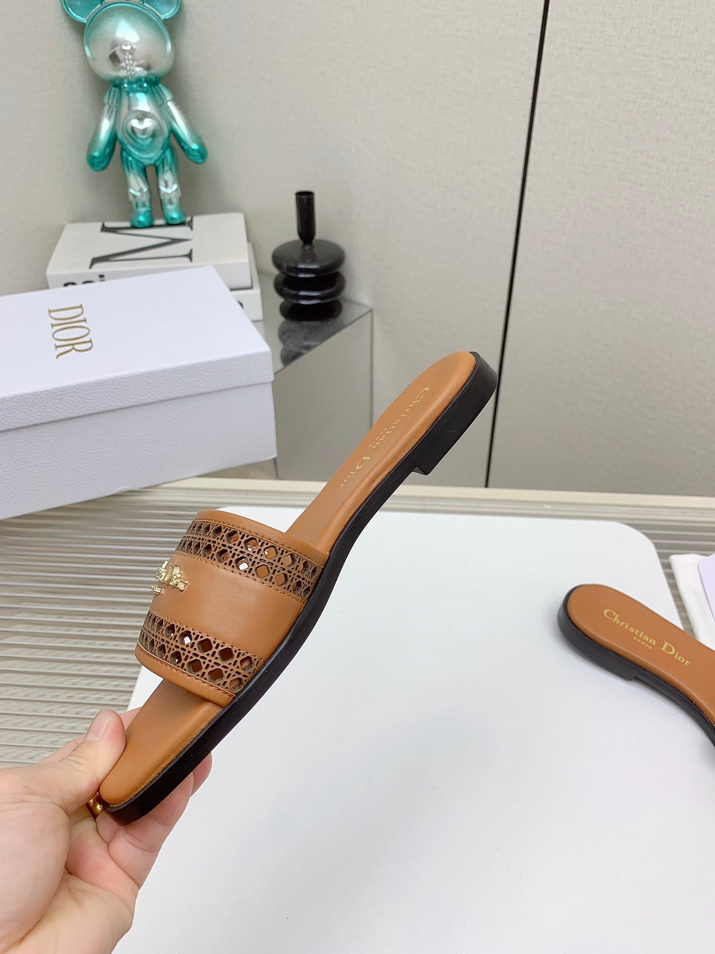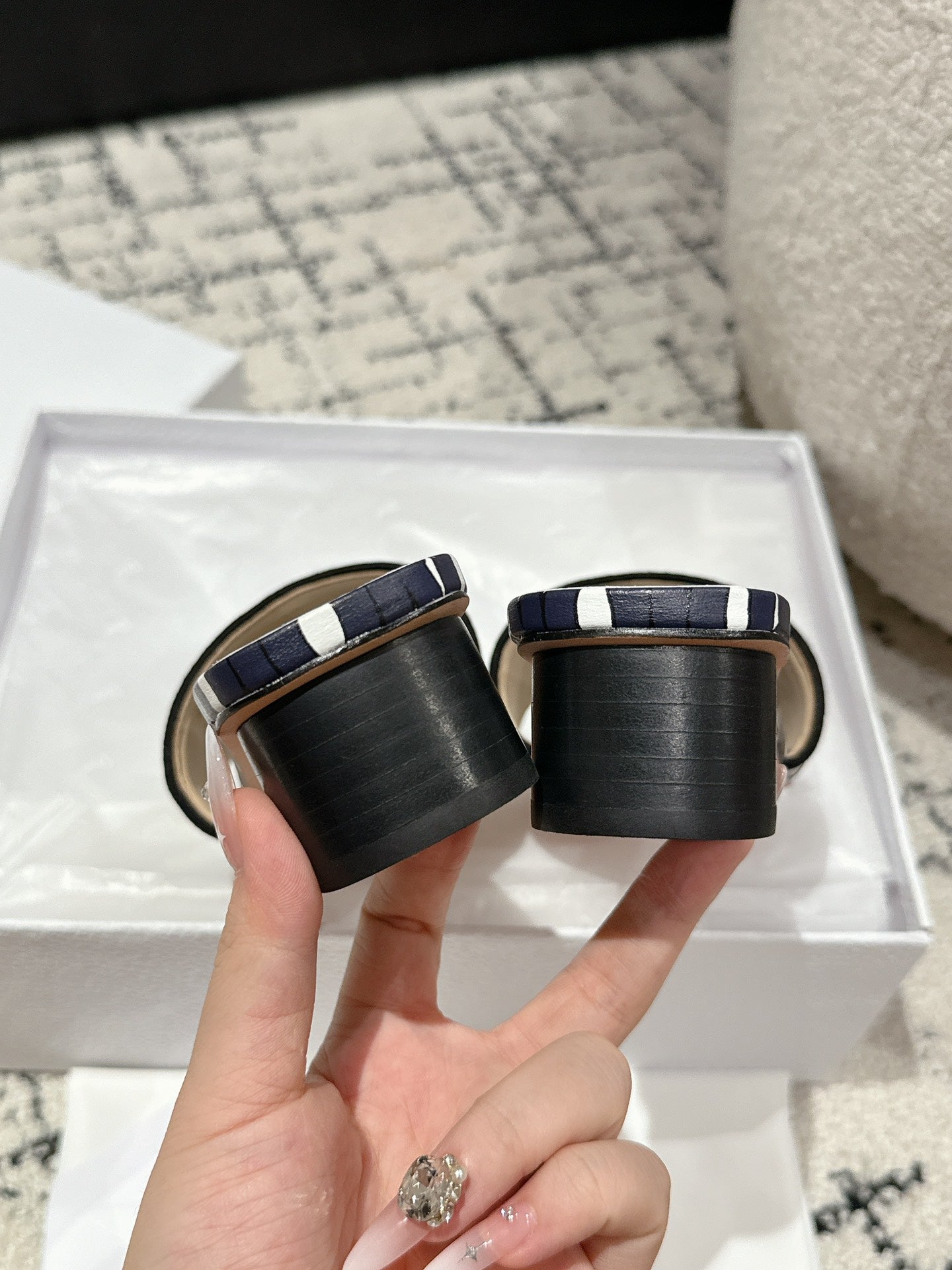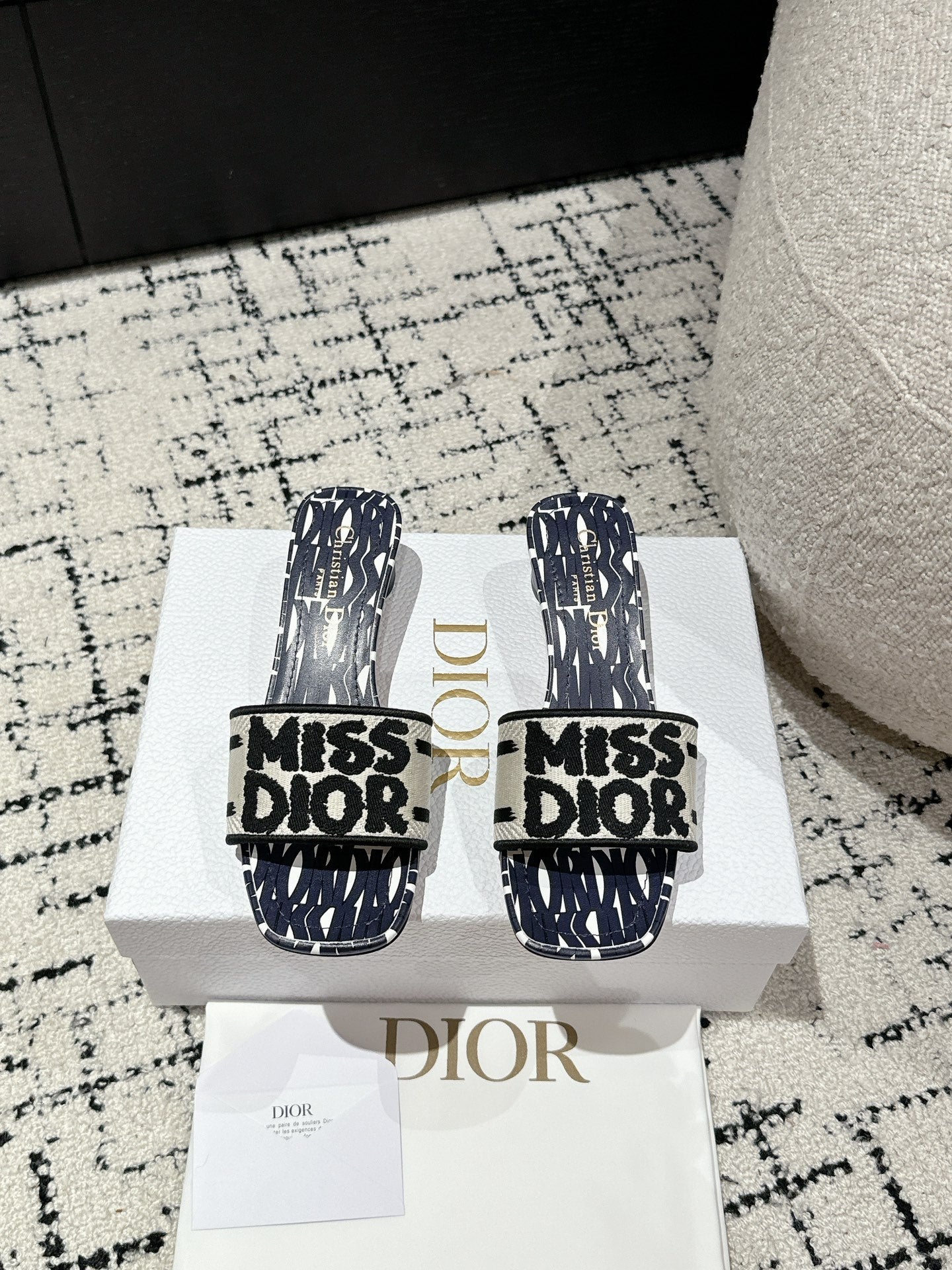 CD Dioriviera Dio(r)evolution Slide Deep Blue White Quilted Fleece Lining And Lambskin