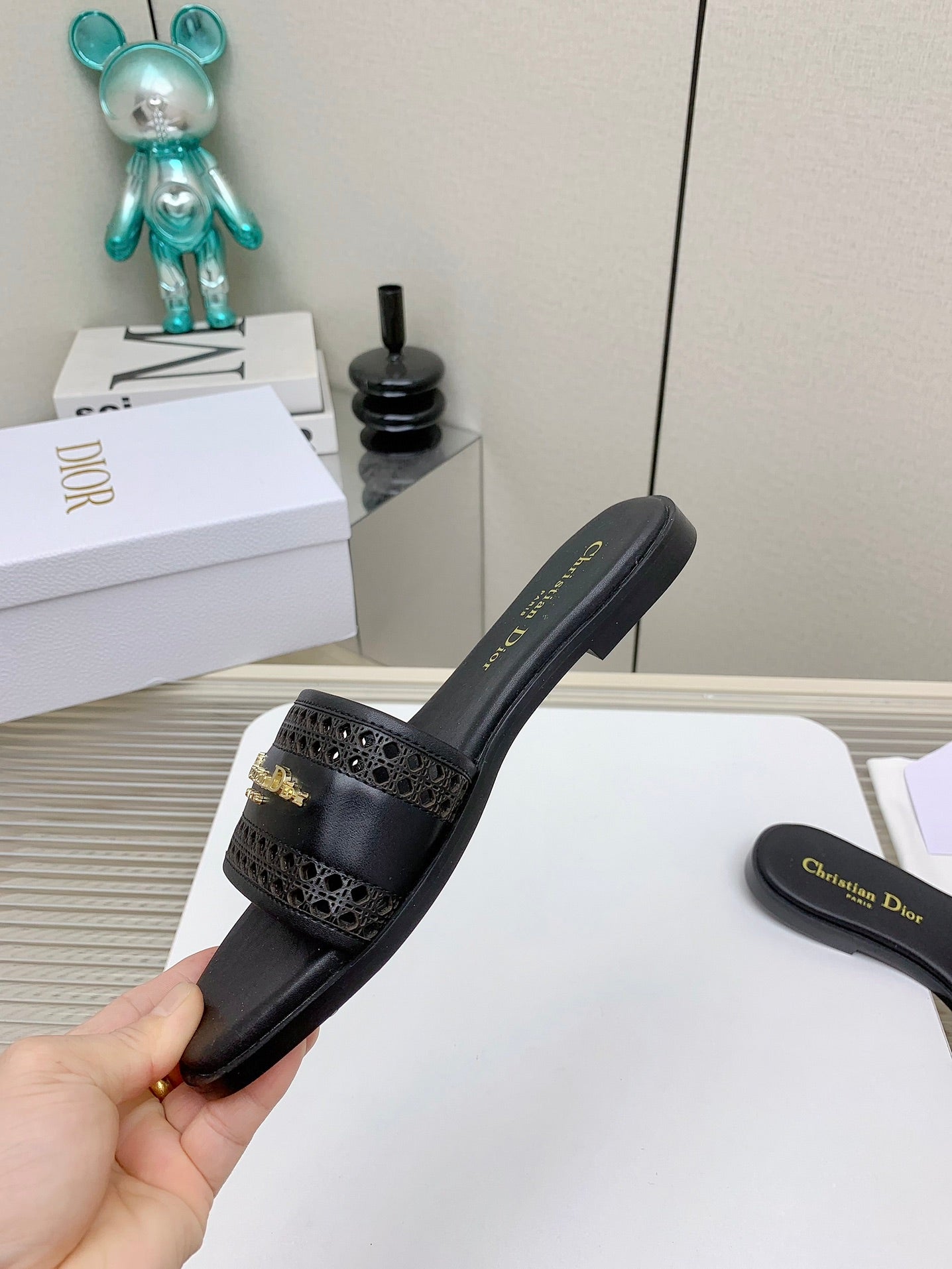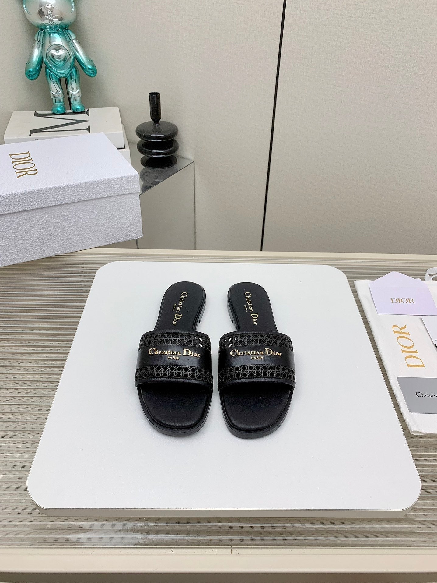 CD Dioriviera Dio(r)evolution Slide Black White Quilted Fleece Lining And Lambskin