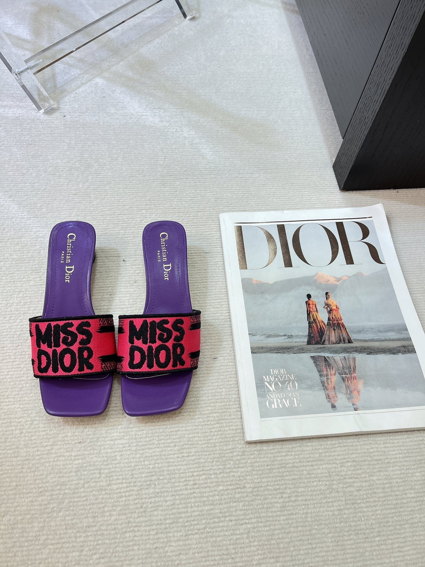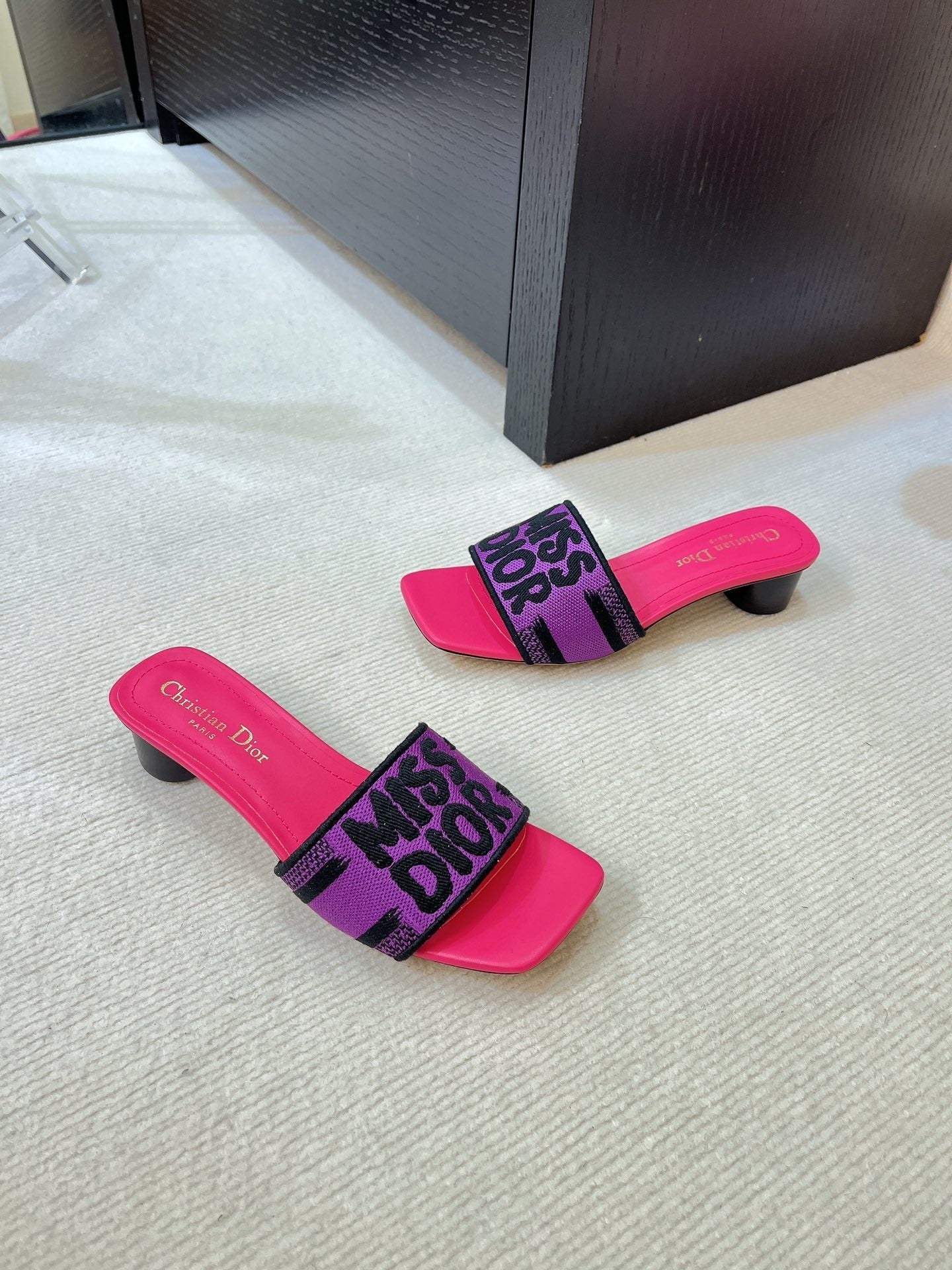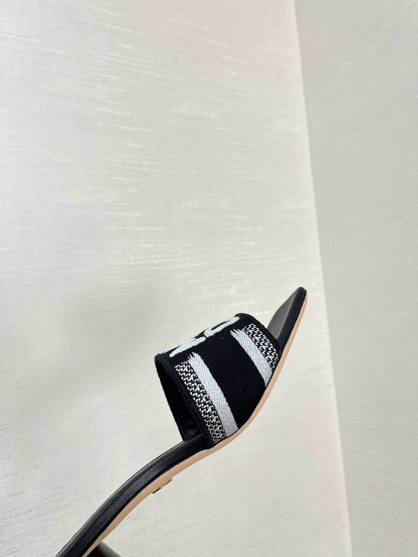 dway heeled slide 35 embroidered cotton black miss cd alllover motif