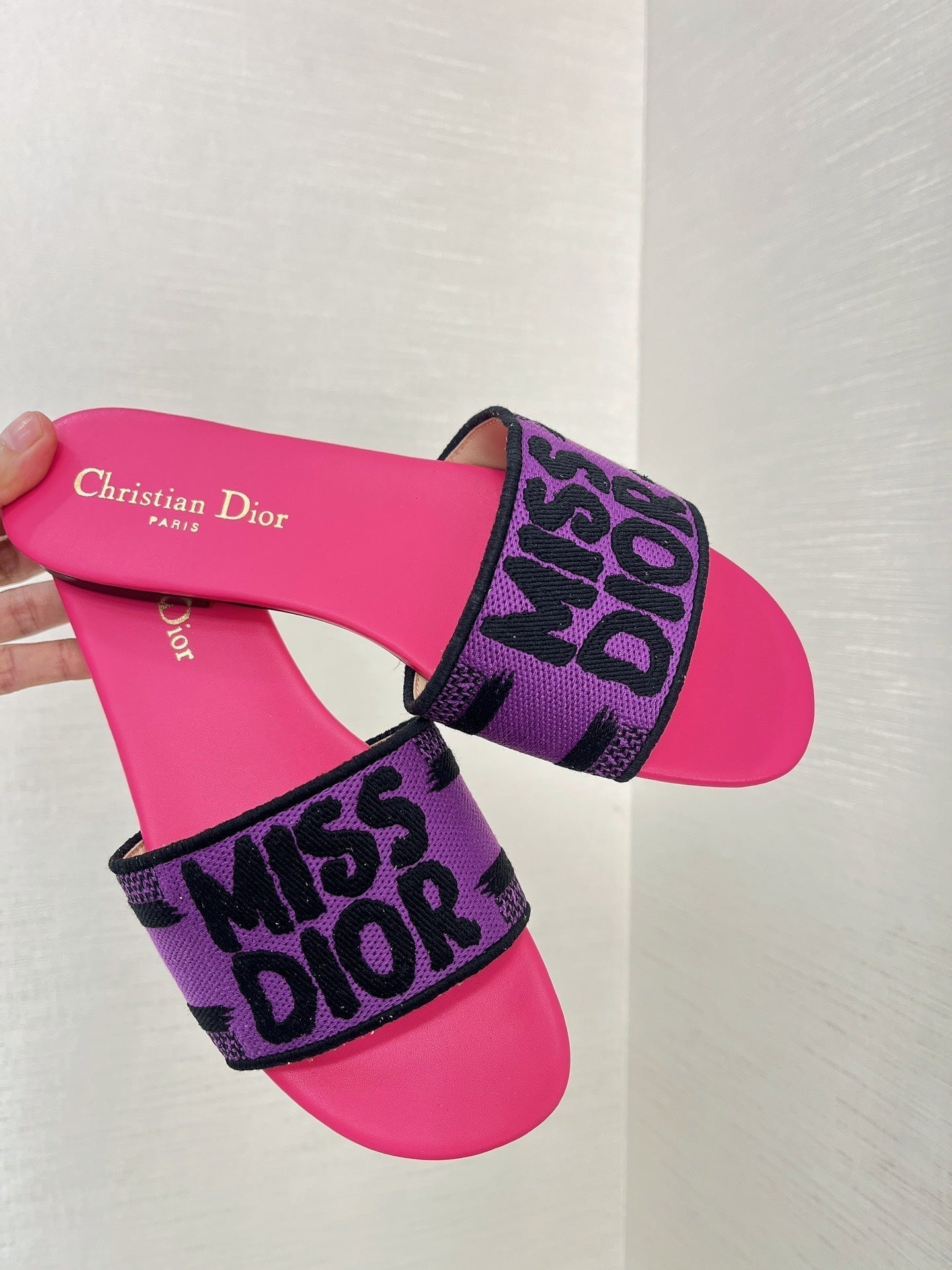 dway slide embroidered cotton pink miss cd alllover motif