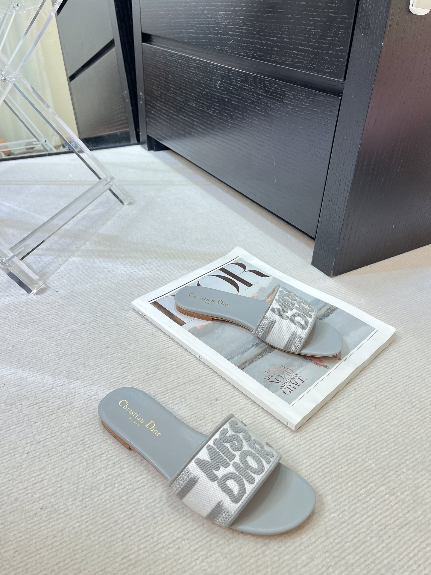 cd dioract dad sandal mule grey lambskin
