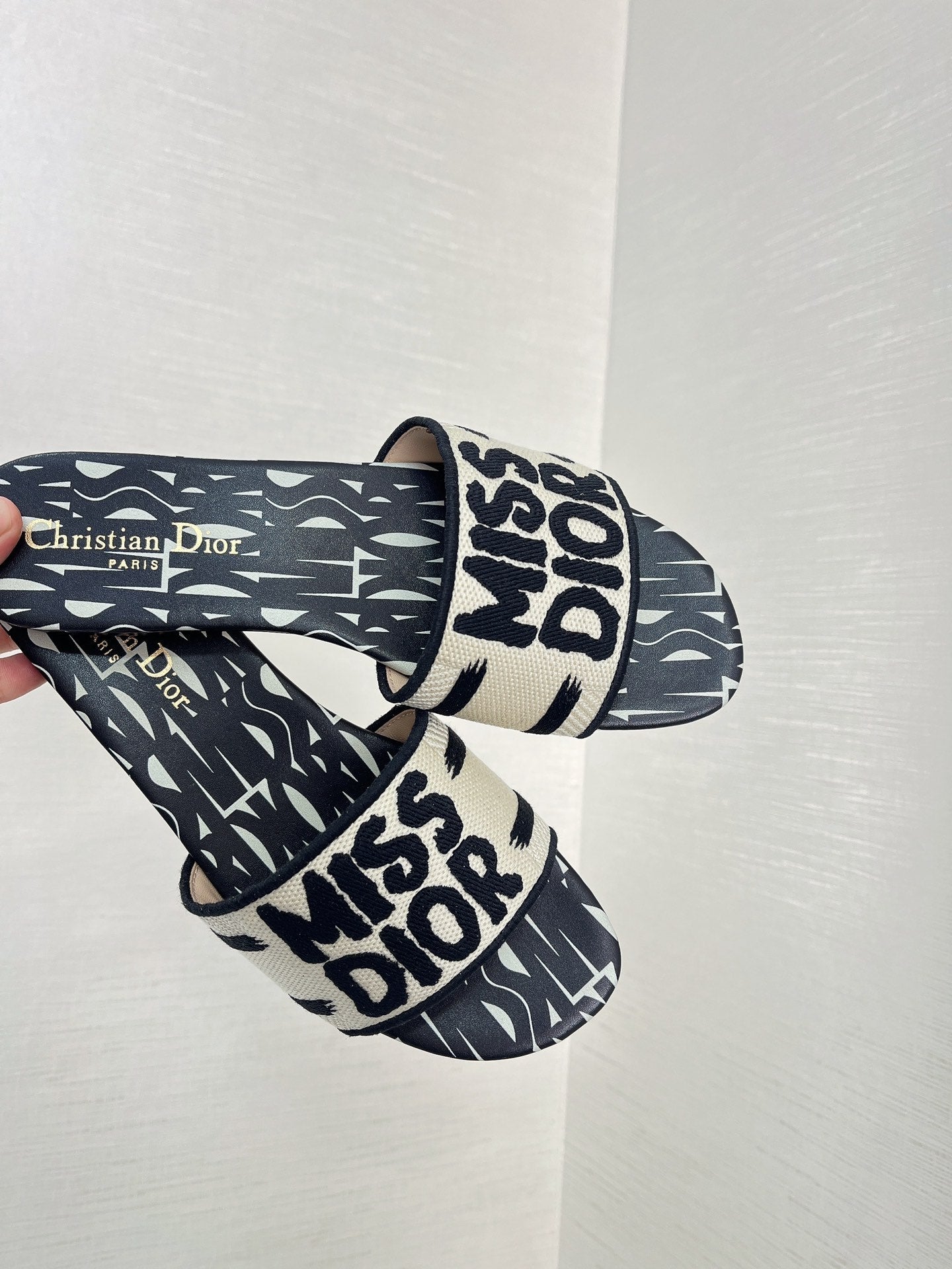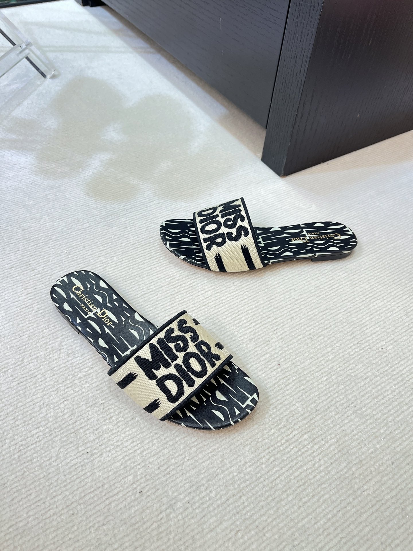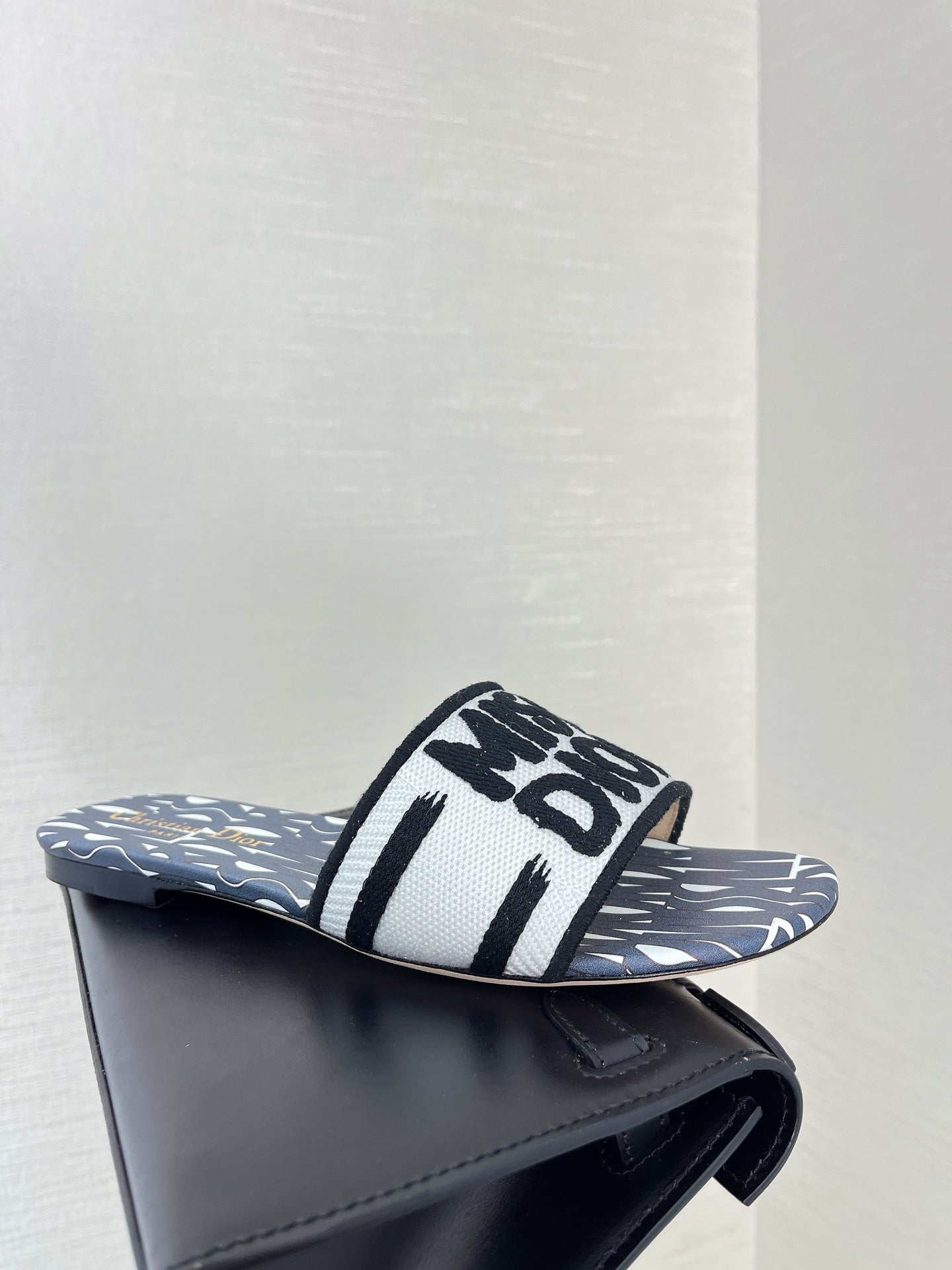 dway slide embroidered cotton black miss cd alllover motif