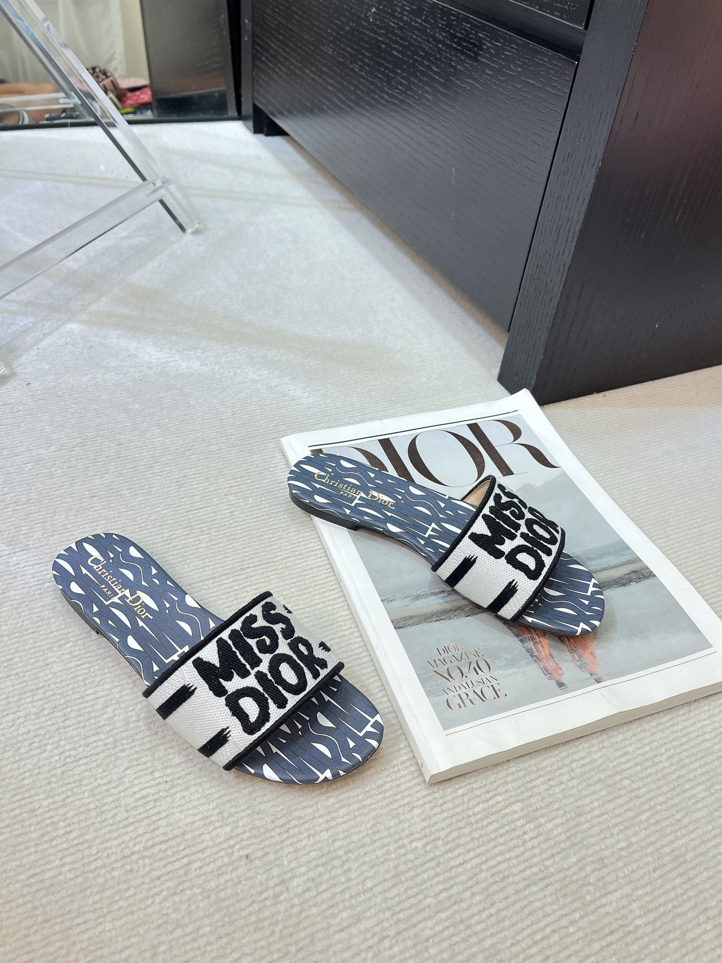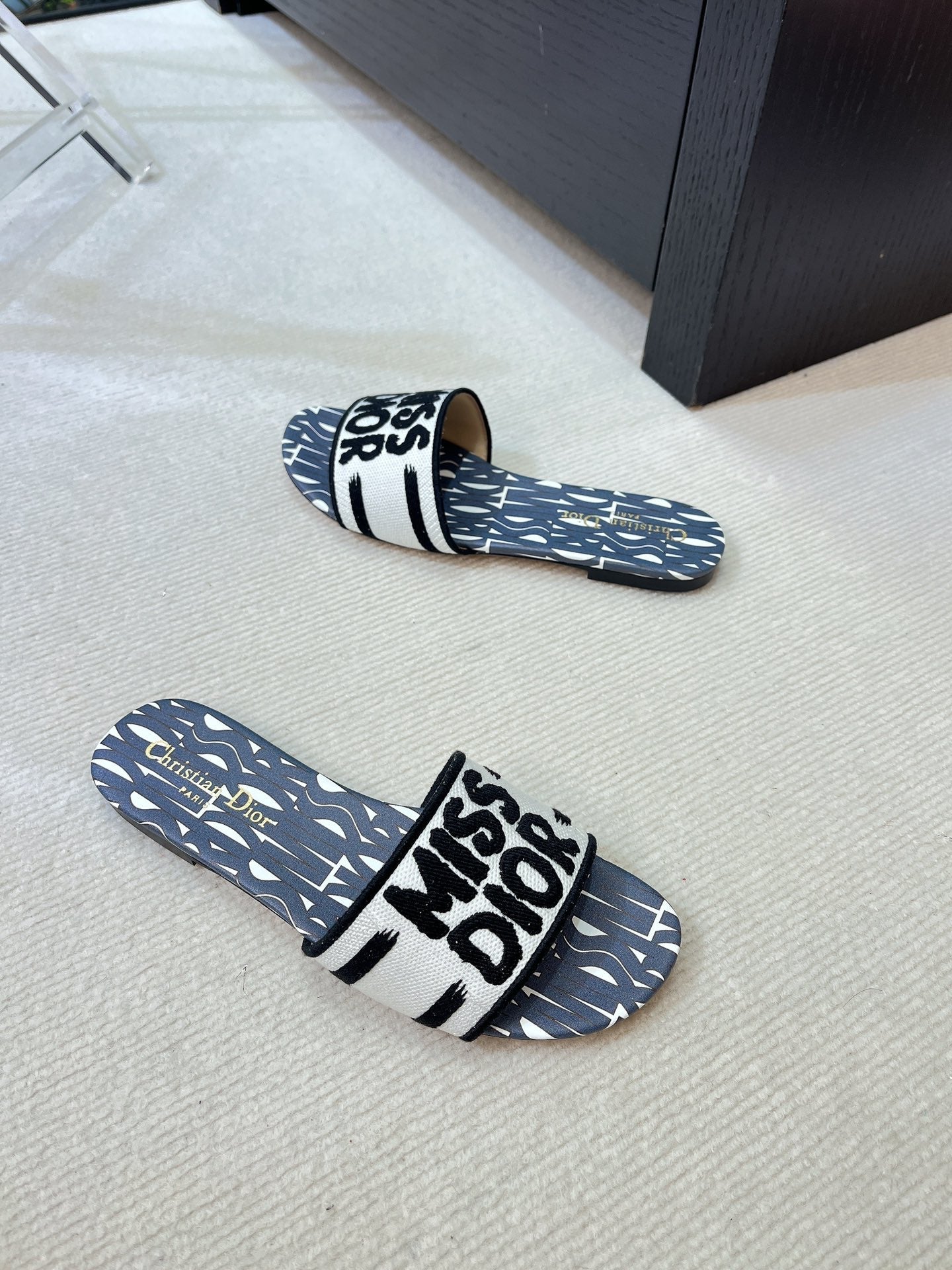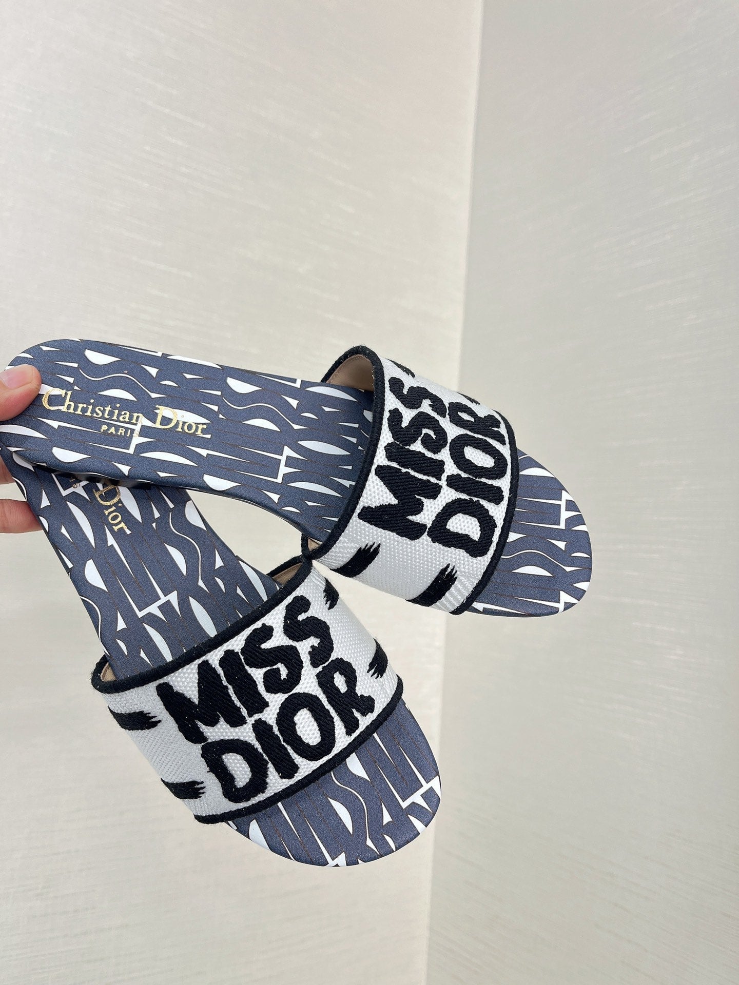 dway slide embroidered cotton black miss cd alllover motif