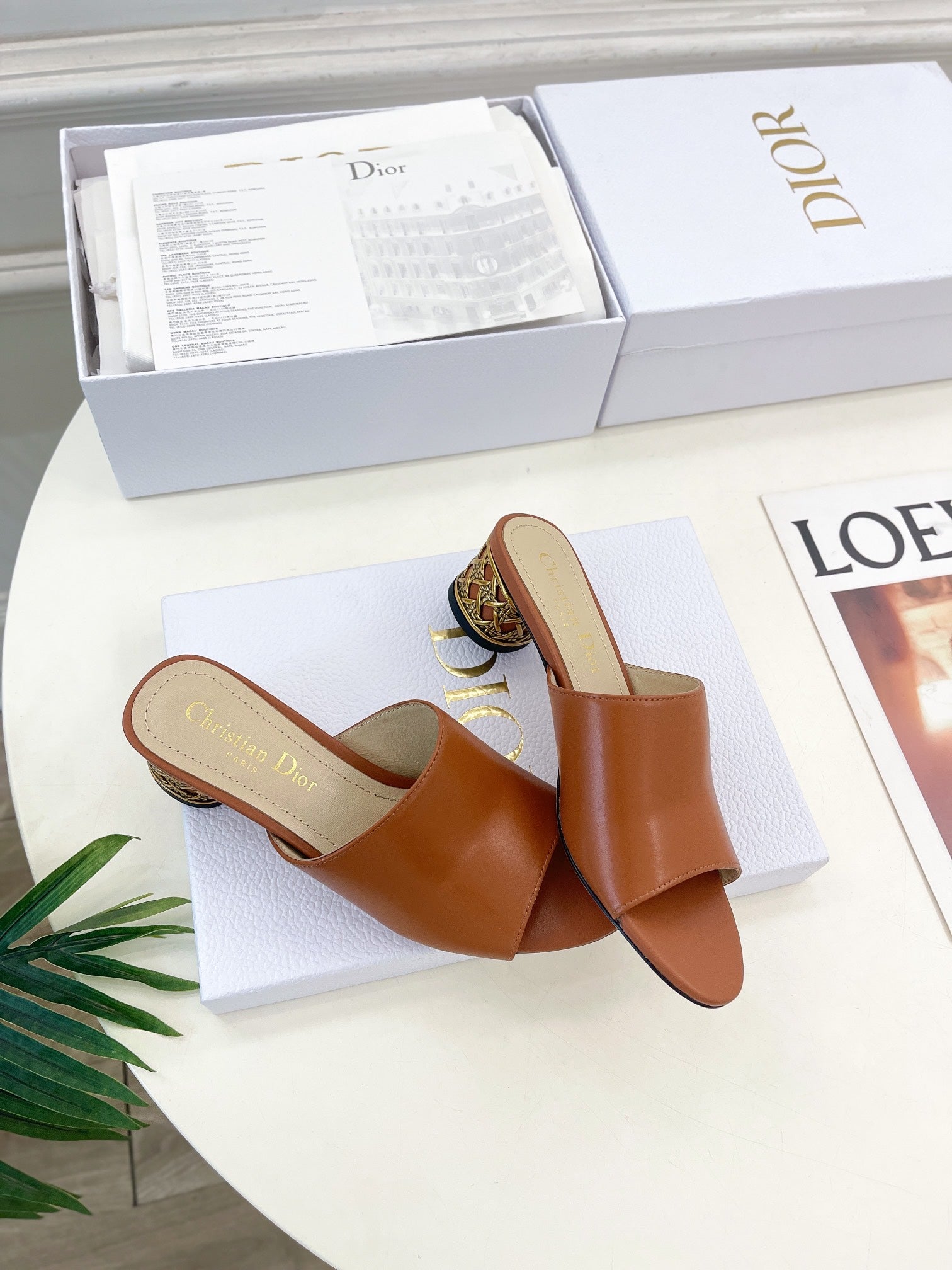 CD Icon Heeled Slide 40mm Brown Calfskin