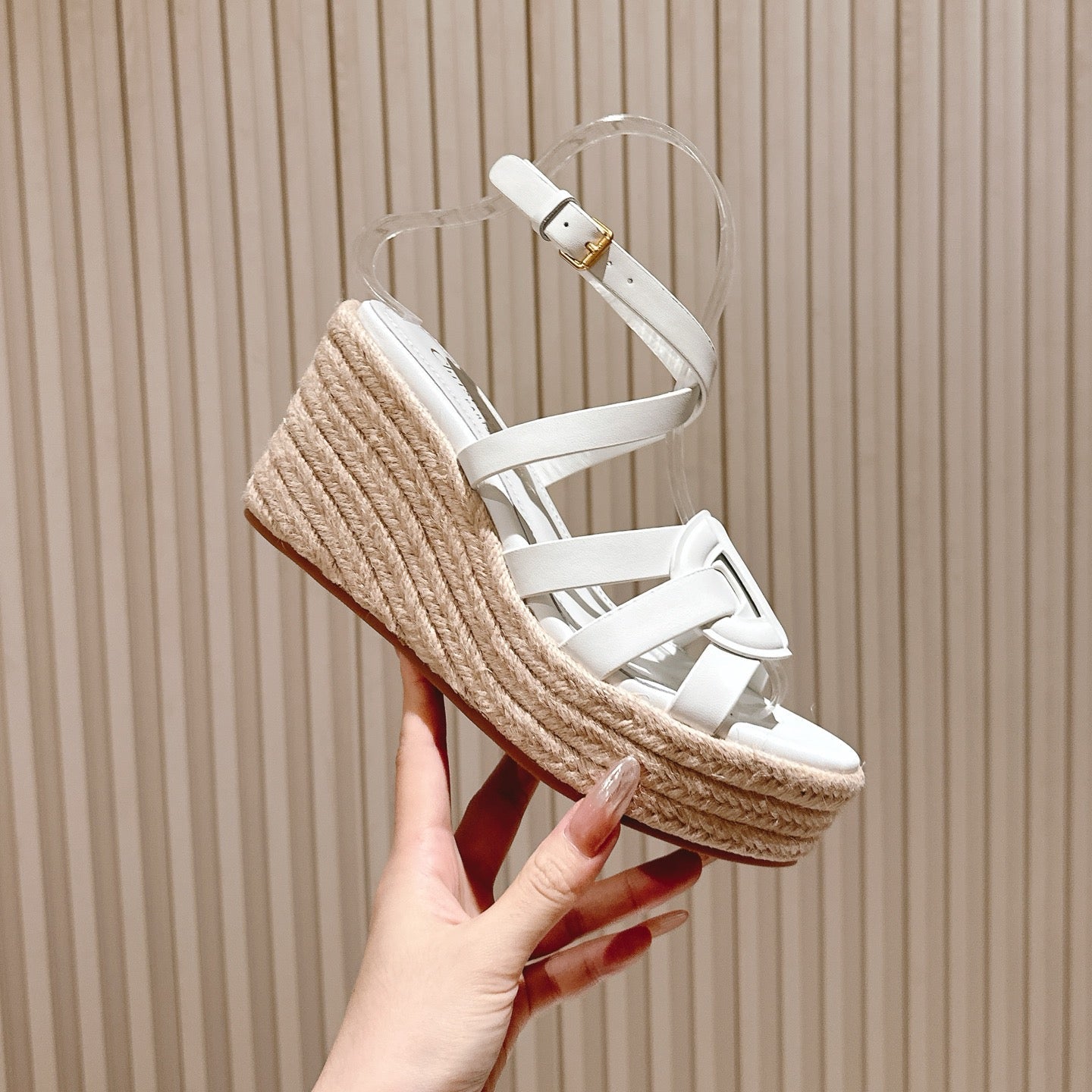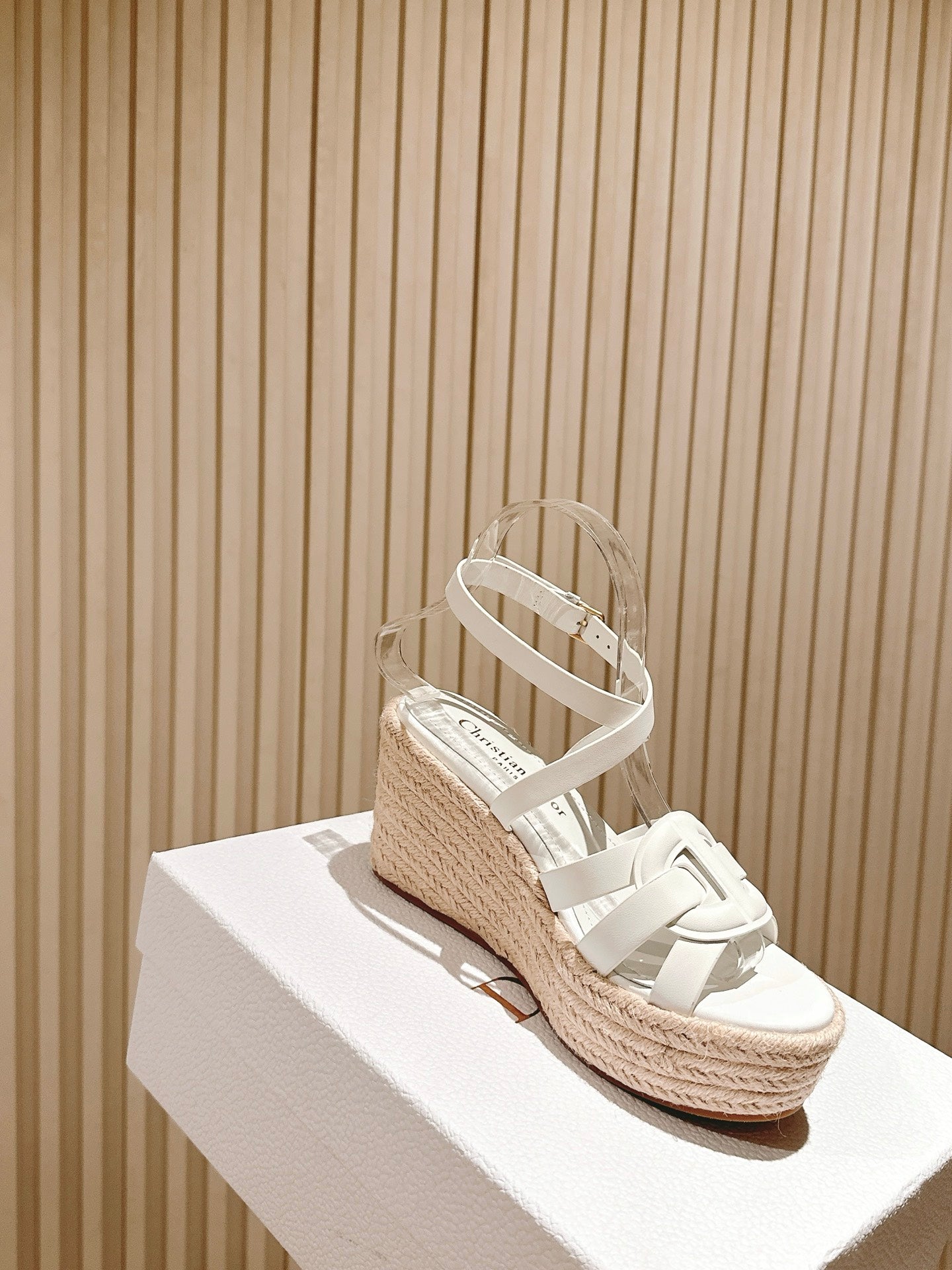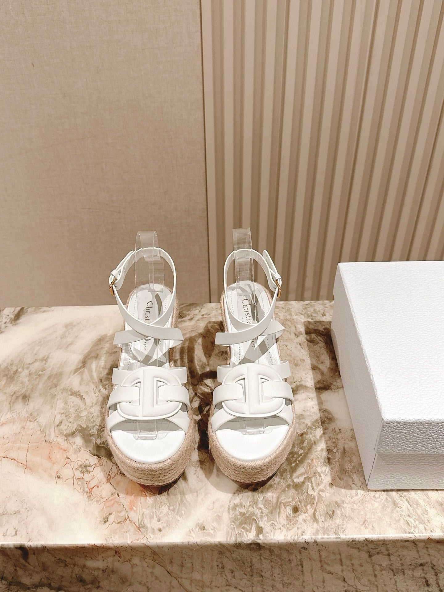 CD D-Club Wedge Sandal 85mm White Calfskin 483080