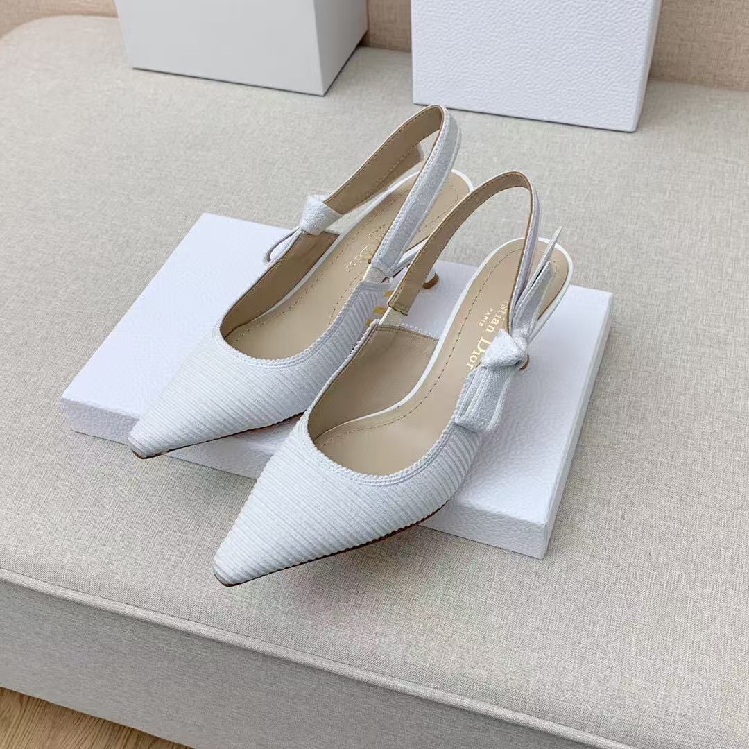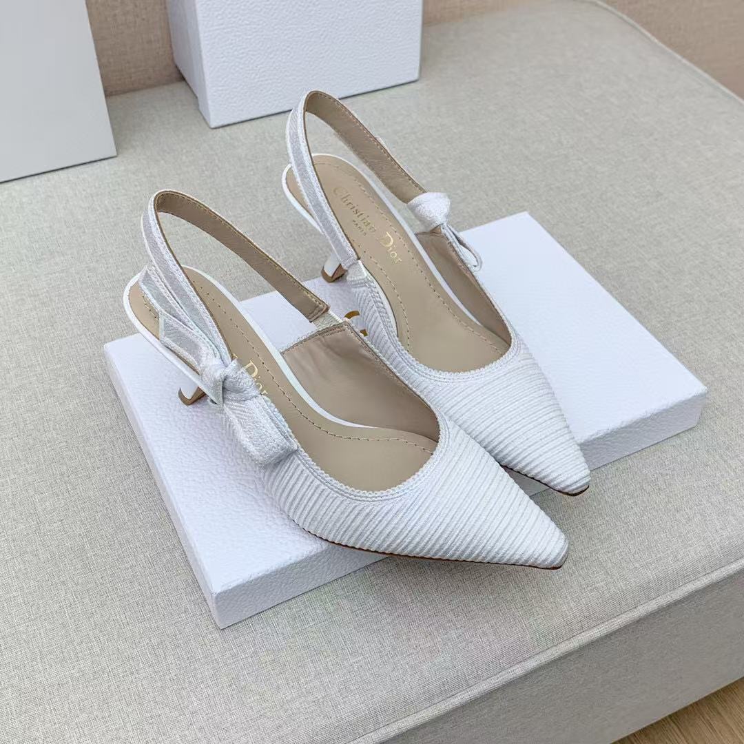 CD J'Adior Slingback Pumps 65mm White Embroidered Cotton