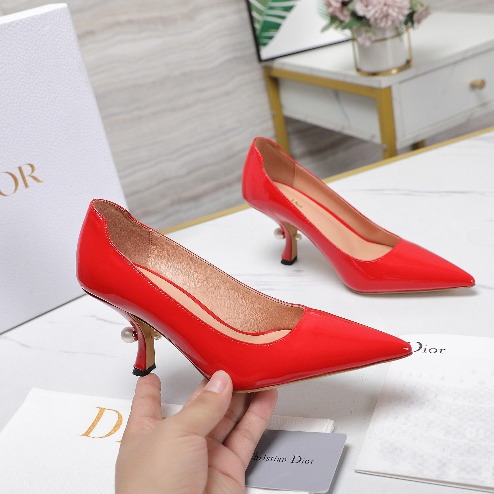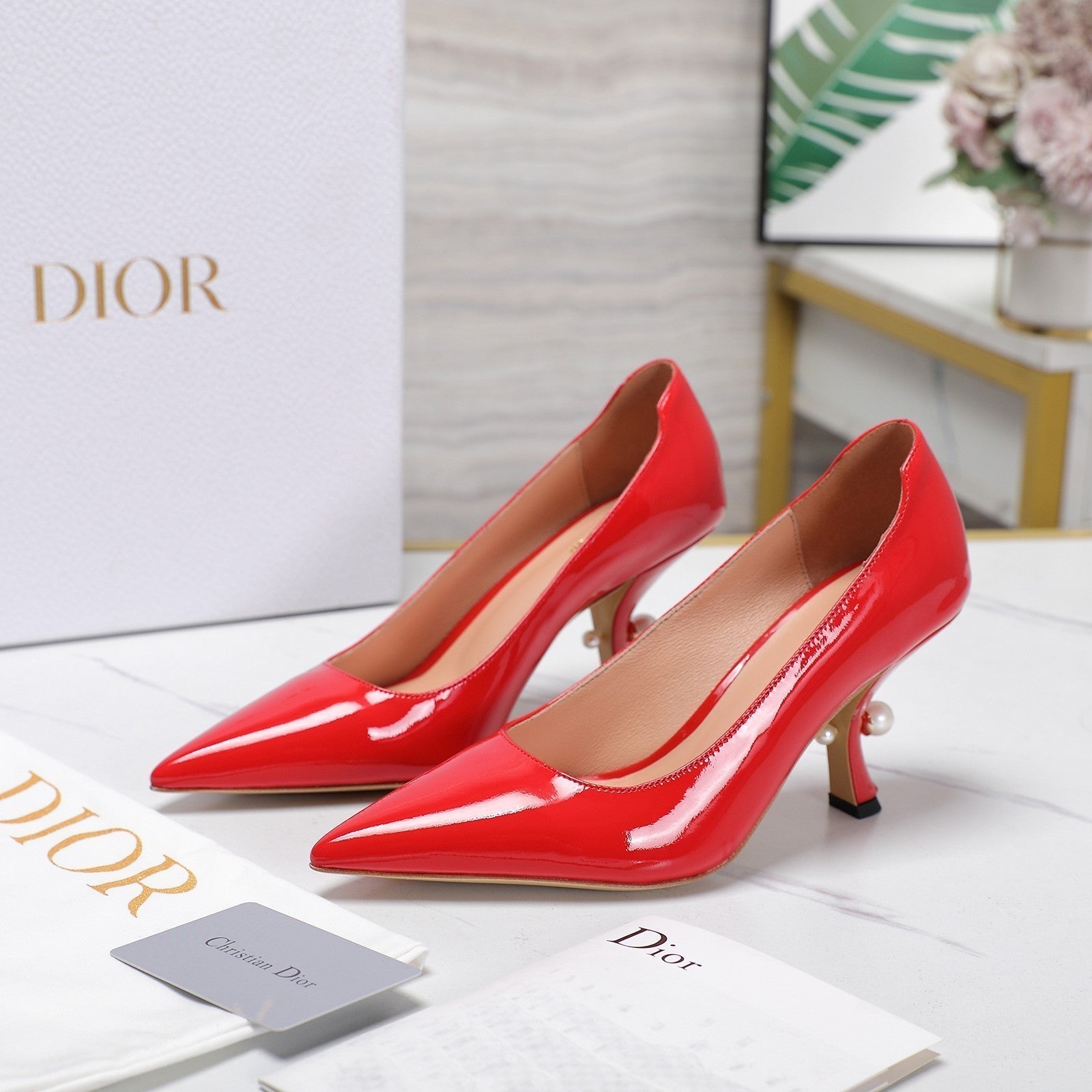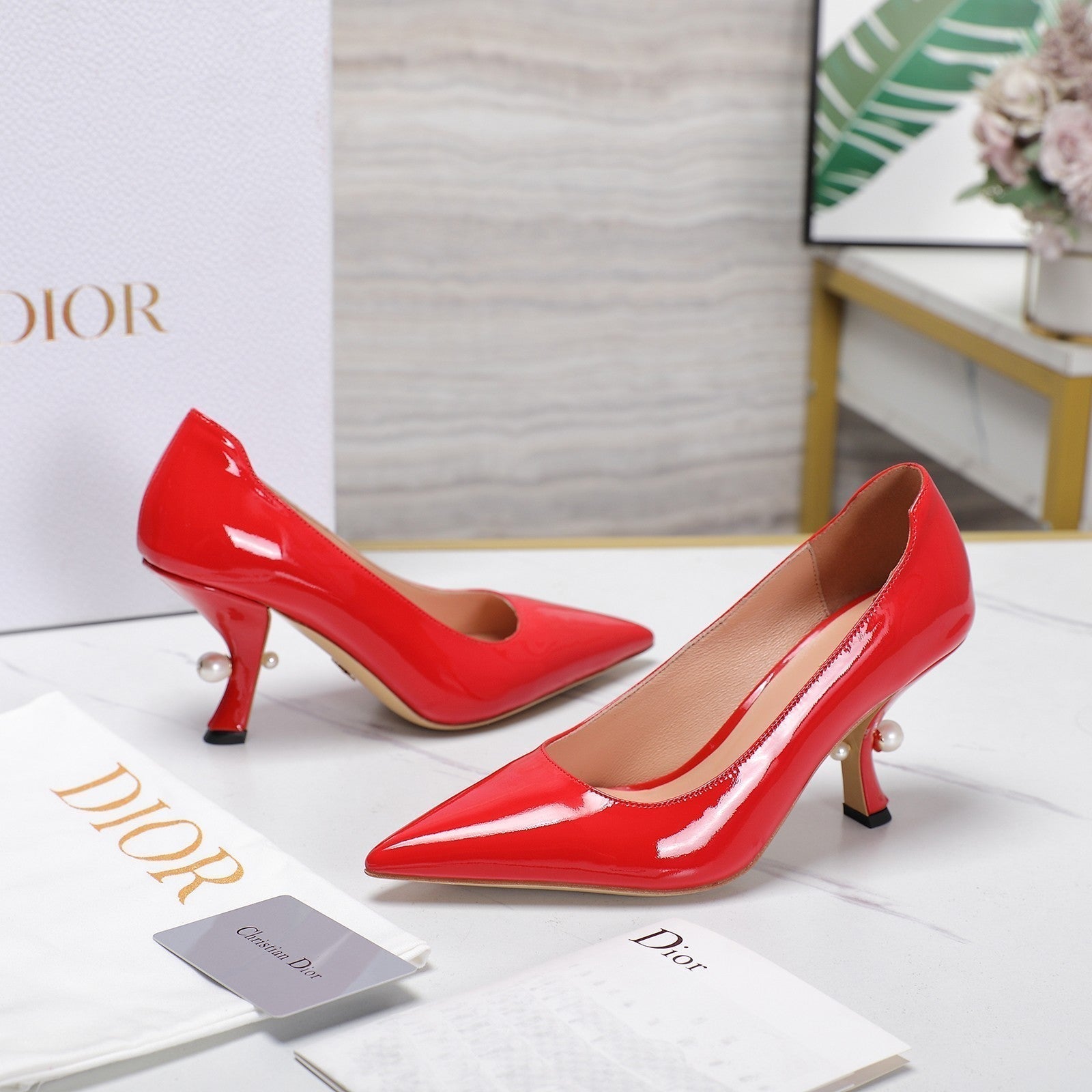 CD Tribales Pump 80mm Glossy Red Orange Cowhide