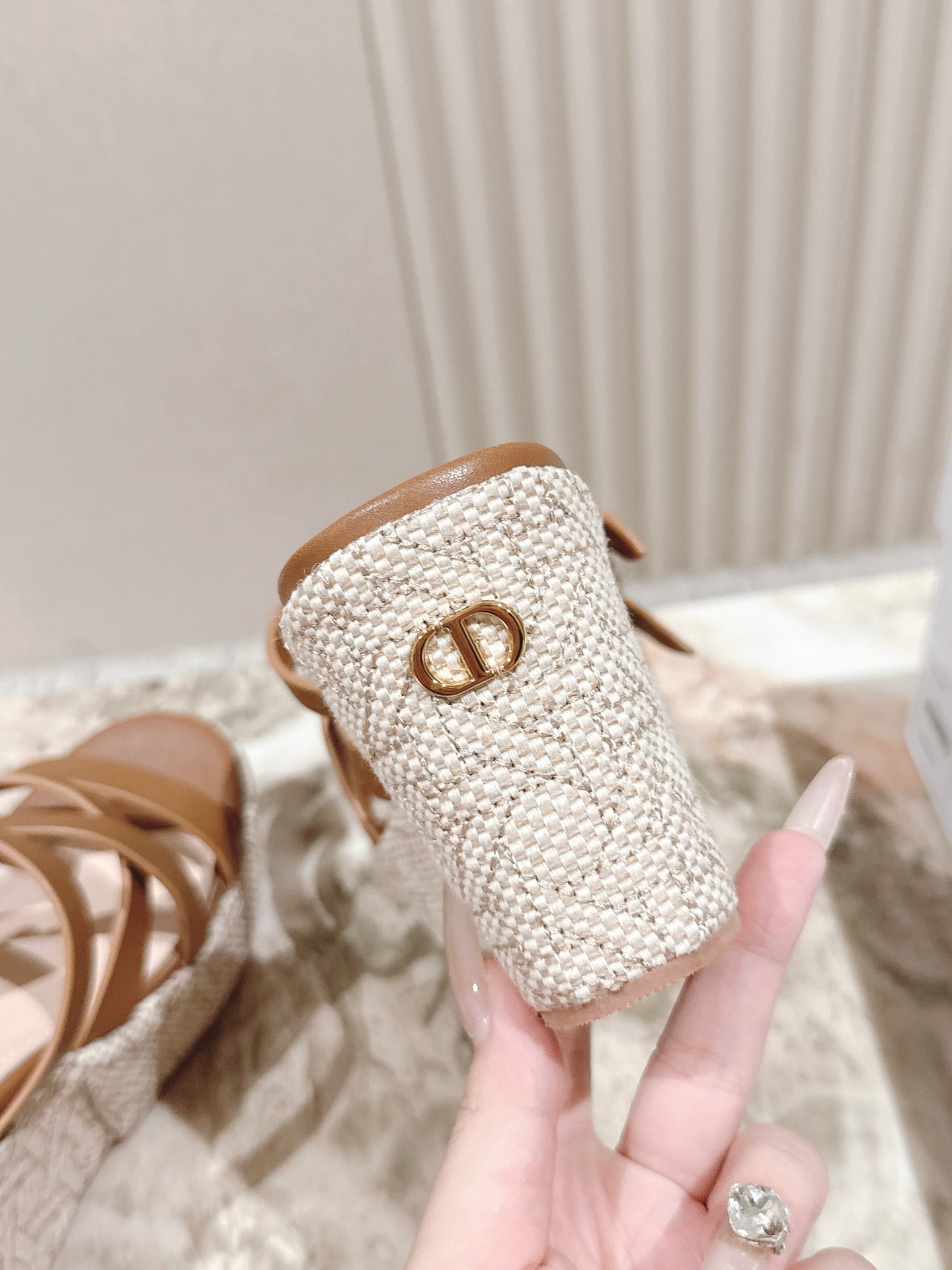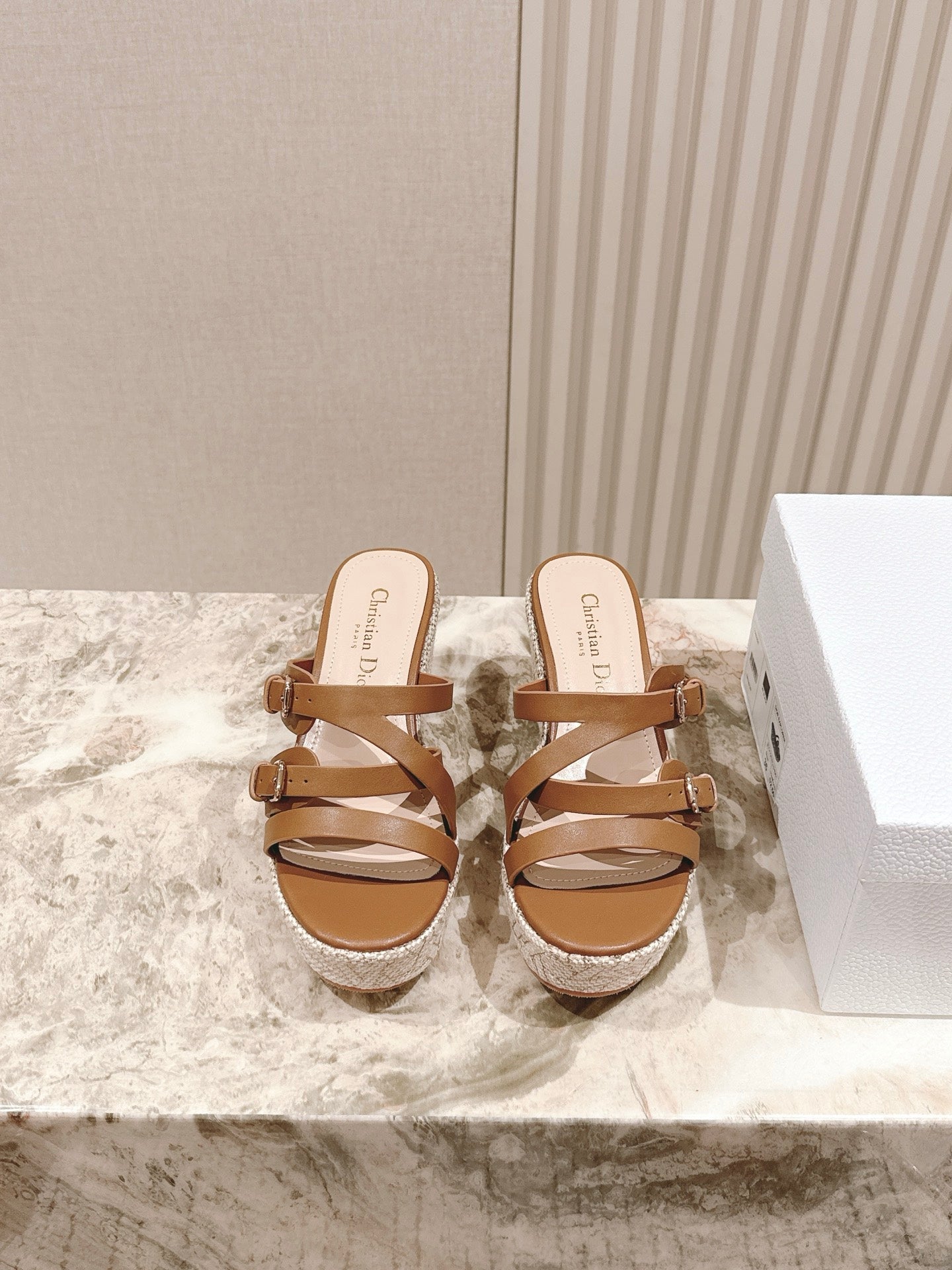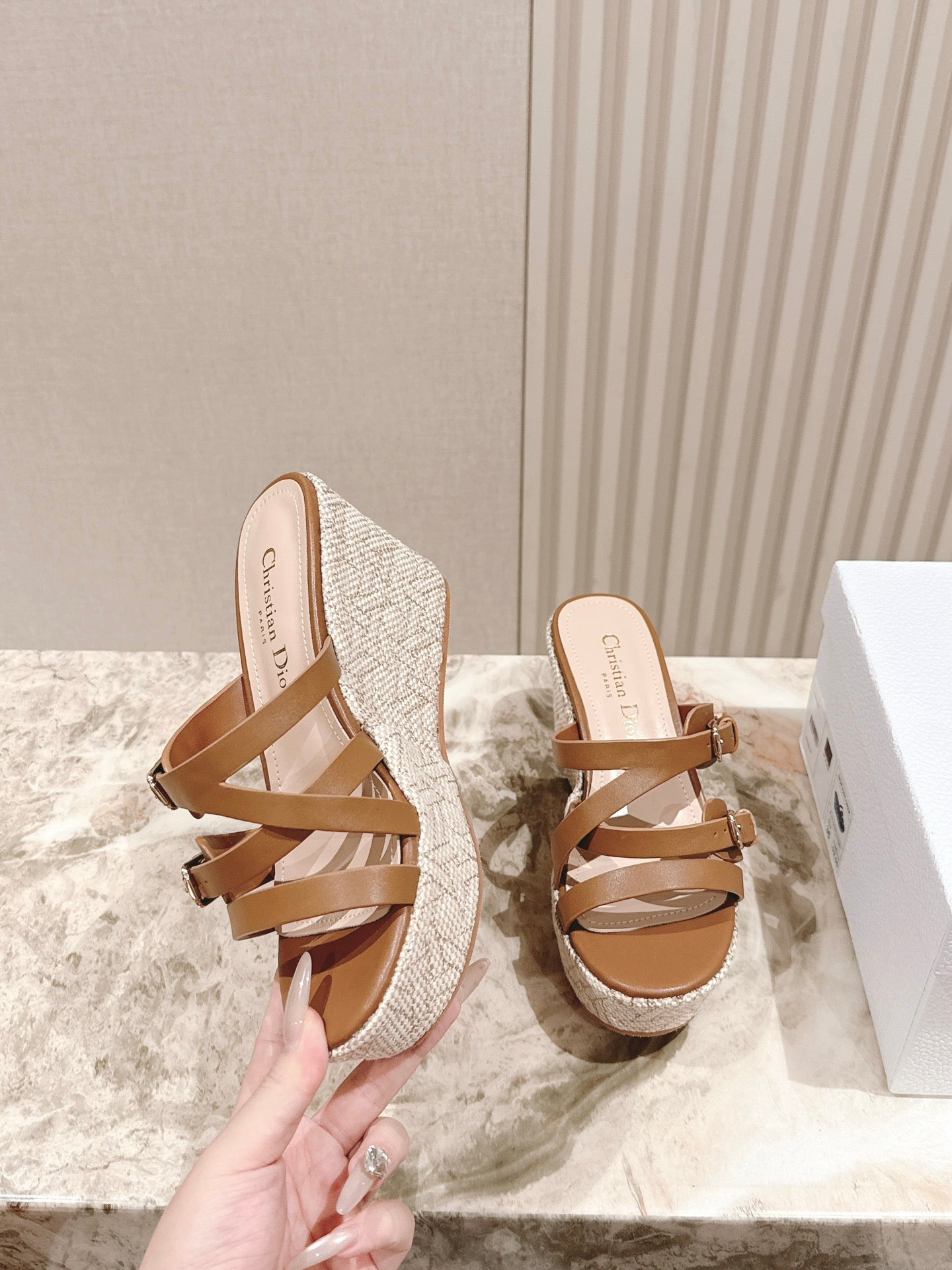 CD Wedge Hemp Sandal 85mm Brown Beige Lambskin 483083