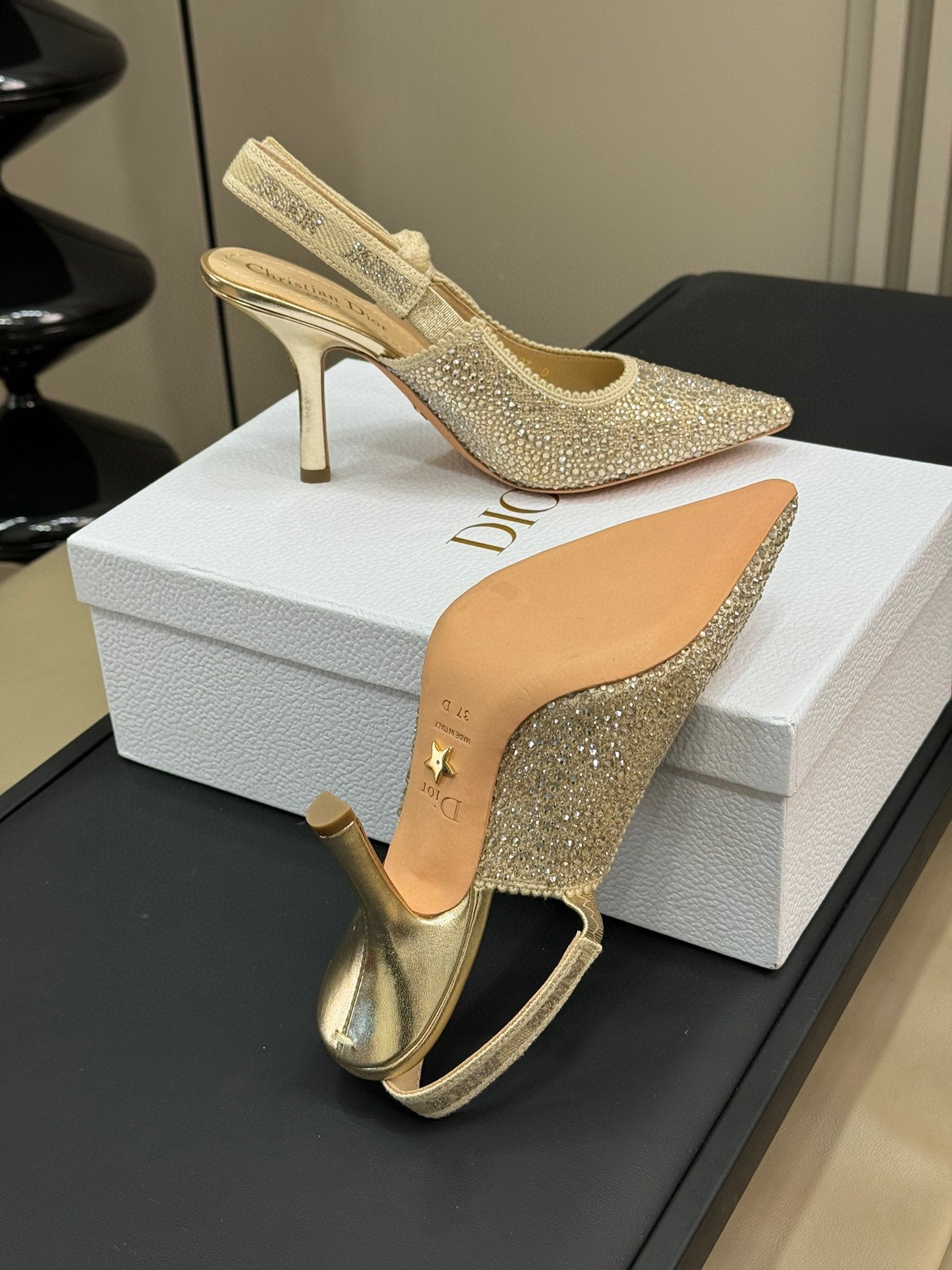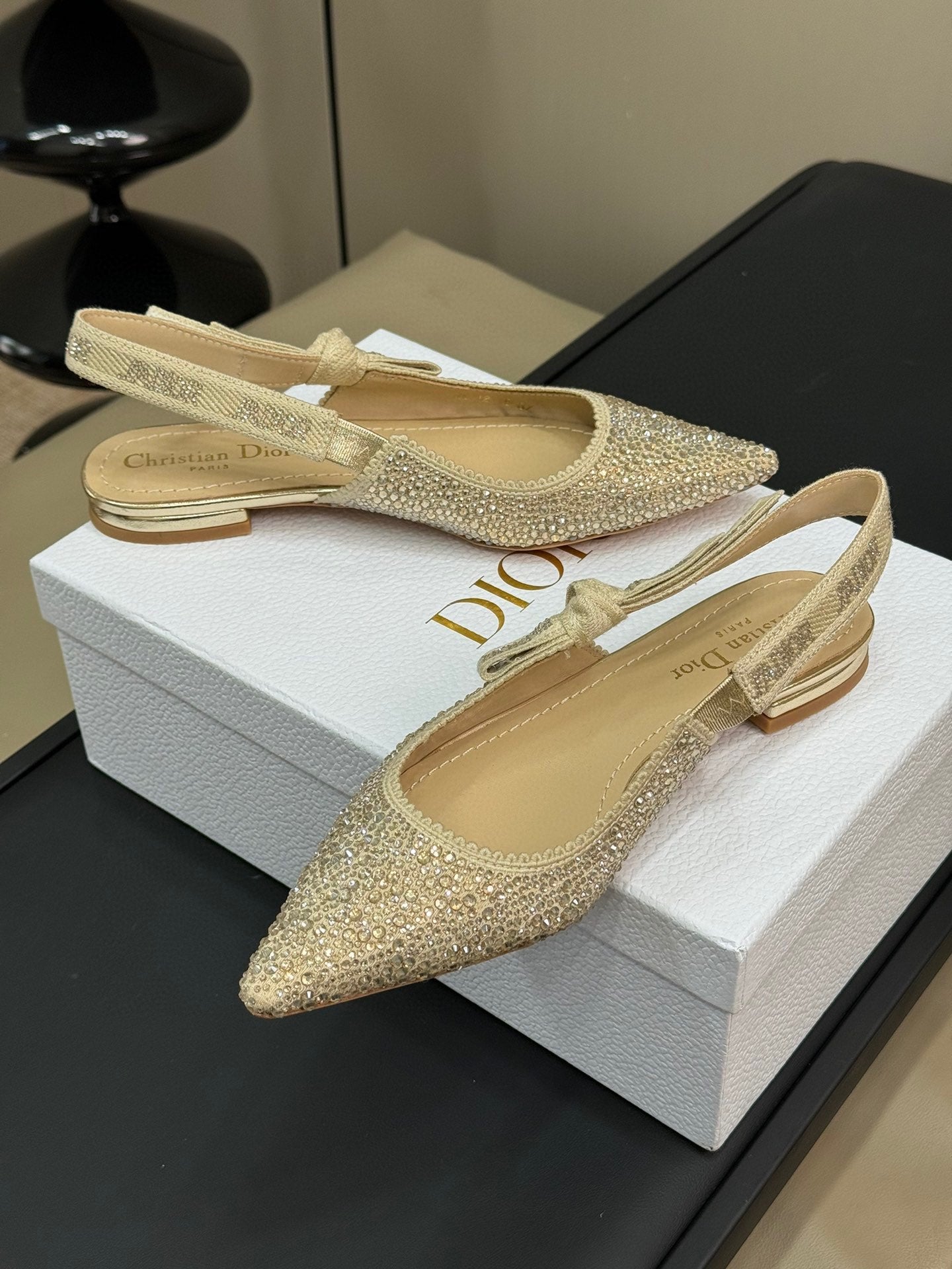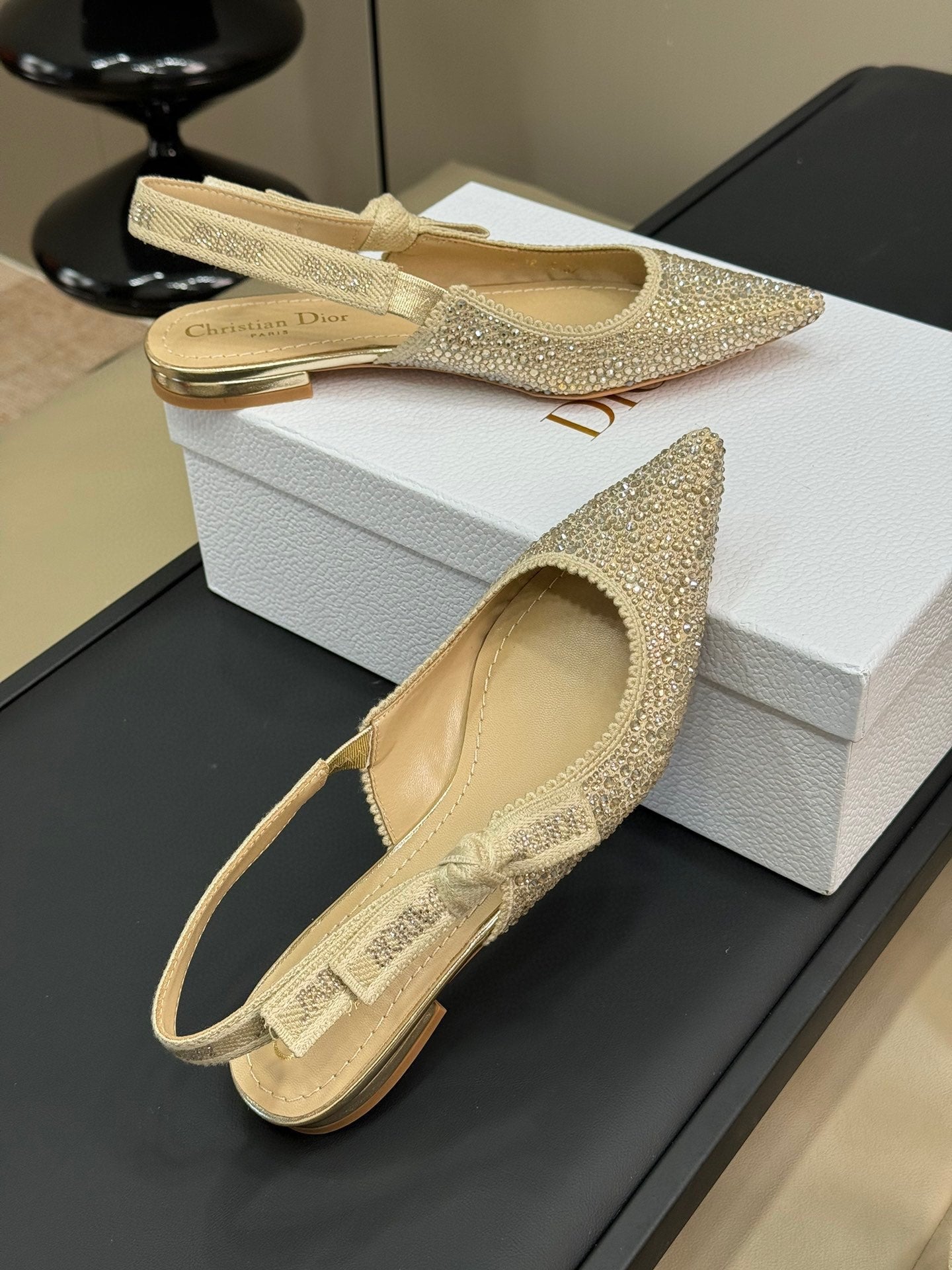 J'Adior Slingback Gold-tone Cotton Microbeads
