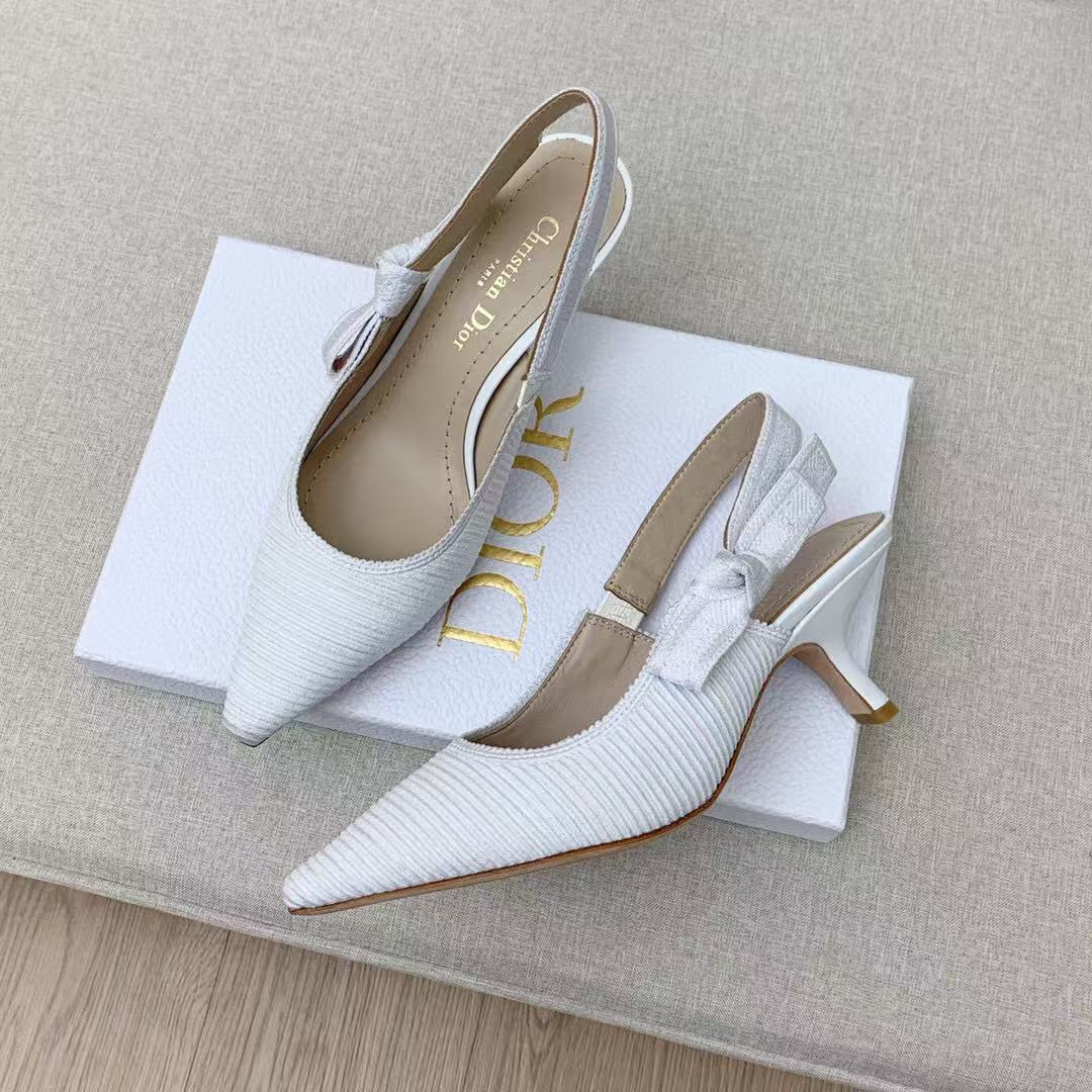 CD J'Adior Slingback Pumps 65mm White Embroidered Cotton