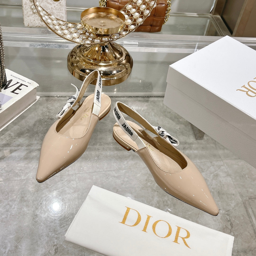 JAdior Slingback Flat Beige Patent Calfskin